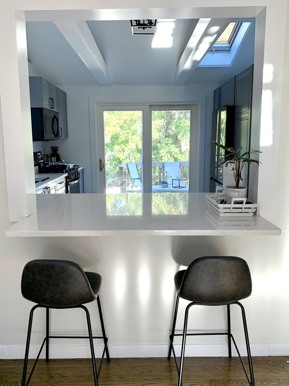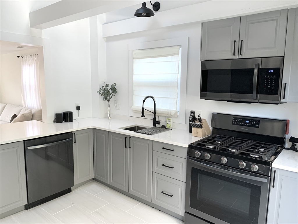 This nicely updated, sun filled top floor unit offers spacious rooms, great flow and a wonderful Marblehead location. The kitchen, with stainless appliances and quartz countertops, provides plenty of cabinet and counter space and opens through sliders to the private deck overlooking the backyard. The unit was recently and tastefully updated including new tile and tub in the bath. The living room with pass-through counter provides great space for entertaining. Good sized bedrooms, 2 car private parking, extra storage space and proximity to the shops, restaurants, pubs, theater, museums, beach - all Marblehead has to offer - make this one of the most desirable units you'll see.