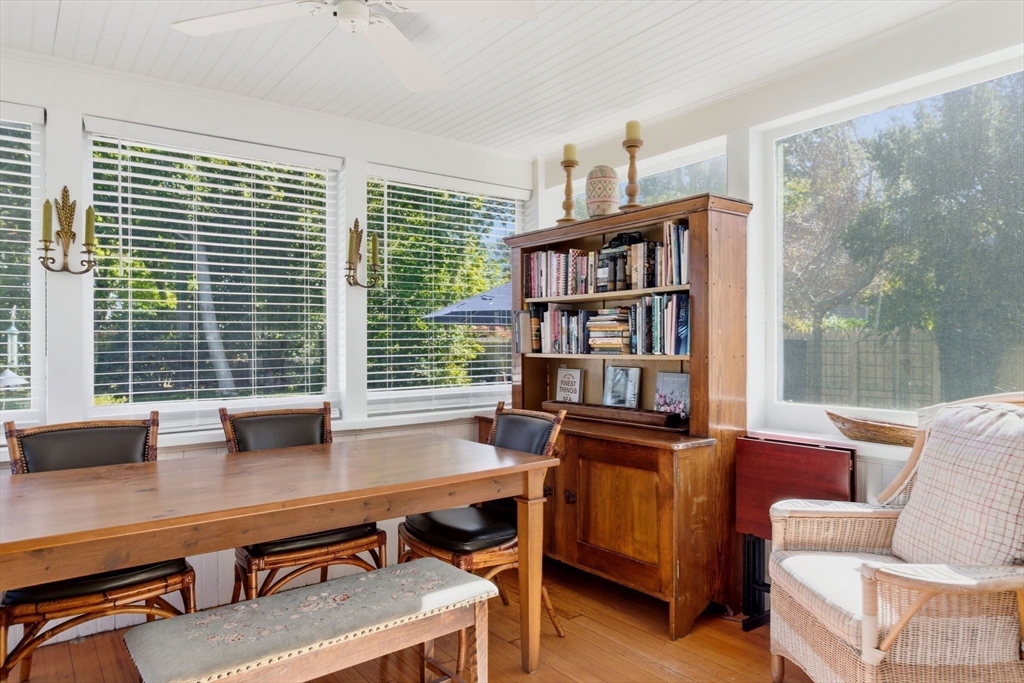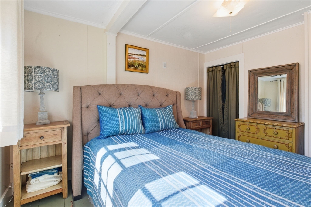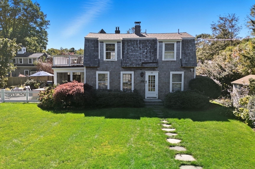 Escape to Duxbury this winter! Located along a private lane, this quintessential Dutch Colonial Revival provides the perfect winter/spring getaway; fully-furnished with all the comforts of home. Tastefully designed and features a cozy living room with a decorative fireplace, plus an adjacent dining room (or office) with hardwood floors throughout. An updated kitchen connects the southwest corner, complete with gas cooking, abundant counter space and pantry storage. The 2nd level includes a grand primary bedroom with French doors to a private deck, providing east-facing views towards the Bay. The guest bedroom bestows similar charm, as does the nearby full bath with a classic soaking tub. Copious natural light fills every room, and ample closet storage, central air & recessed lighting list some of the many modern conveniences. Resting on approx 1/3 acre, the expansive front yard & fence-enclosed patio are not understated, plus a 4-car gravel driveway. Ready for immediate occupancy!