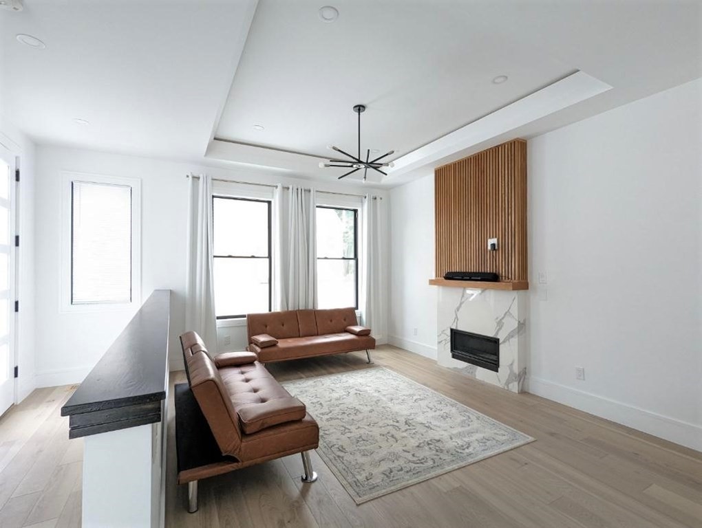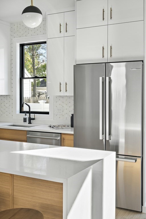 Immediate Availability__This Fully furnished new construction high-end townhome is stocked with everything, including small electronics, cookware, bedsheets, blankets, and more. located in one of Boston's, as well as nation's best suburbs, just a short 20-minute drive from Boston, Boston Harbor, Seaport, Boston University, Boston College, Harvard, and MIT. This architectural marvel boasts 4 bedrooms & 3.5 baths, offering a truly exceptional living experience. Step into the heart of this modern masterpiece, a chef's dream kitchen adorned with sleek quartz countertops, bespoke custom cabinets, and a state-of-the-art Bosch appliance package. Host family and friends in the private fenced-in yard, complete with a patio, patio furniture, and a grill. The open dining area connects to the elegant living space, featuring a cozy gas fireplace. this home is ideal for both family gatherings and shorter stays. Shorter rental terms ranging from 3 to 12 months are available at a higher rate.