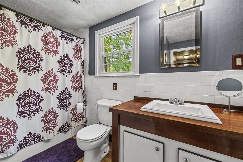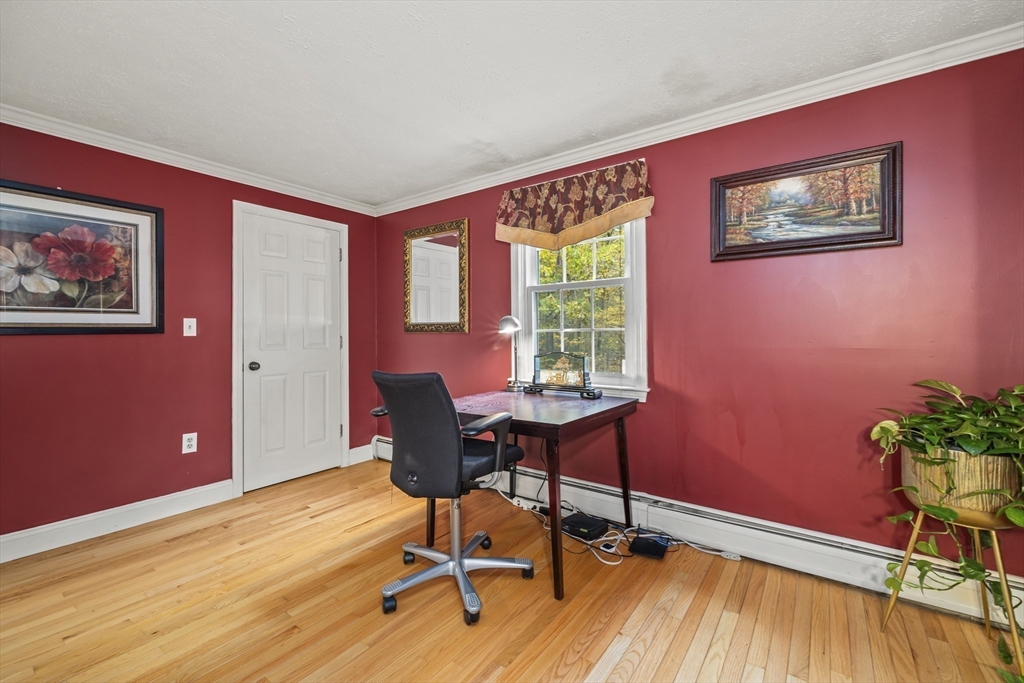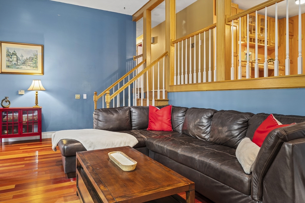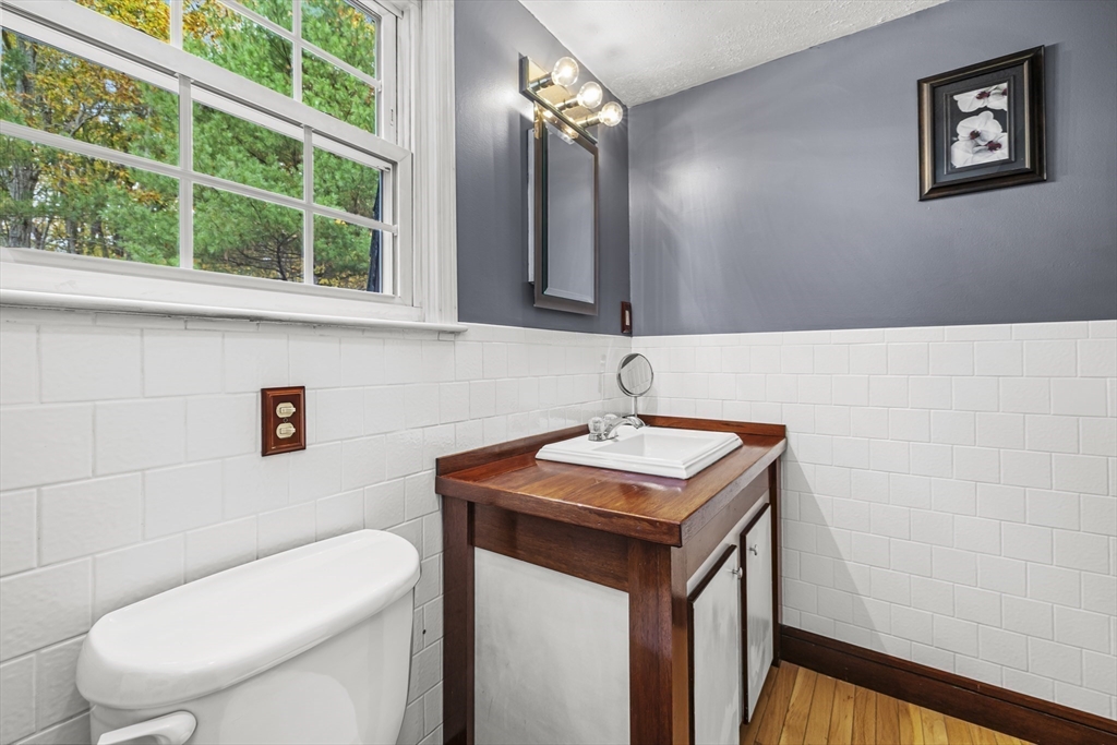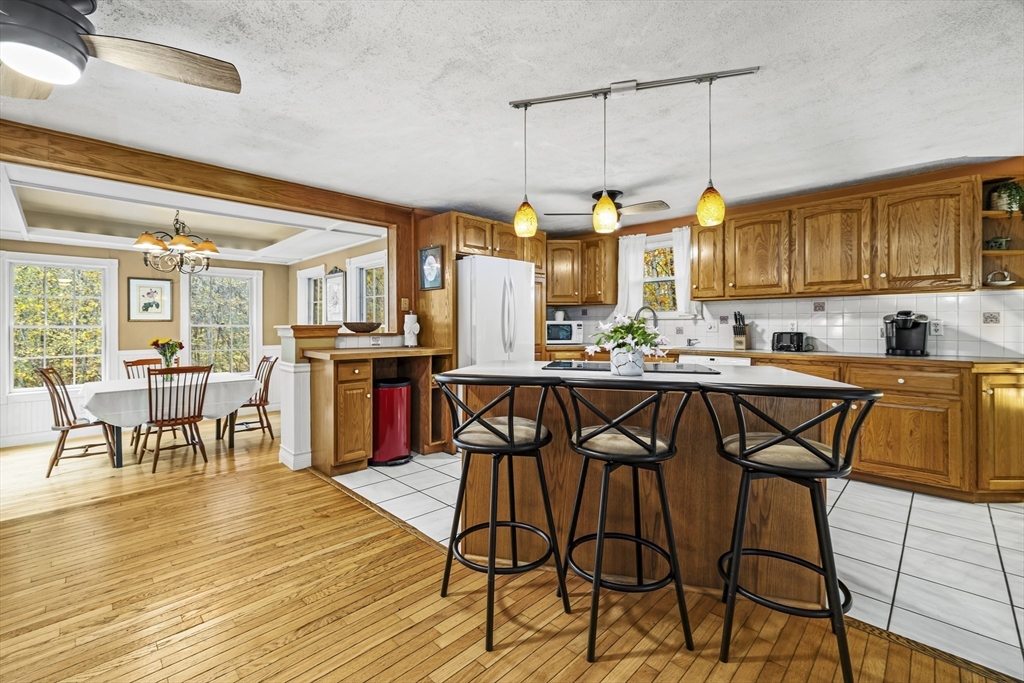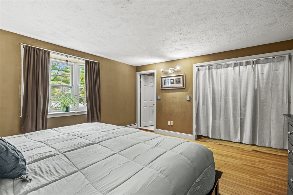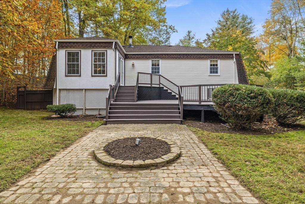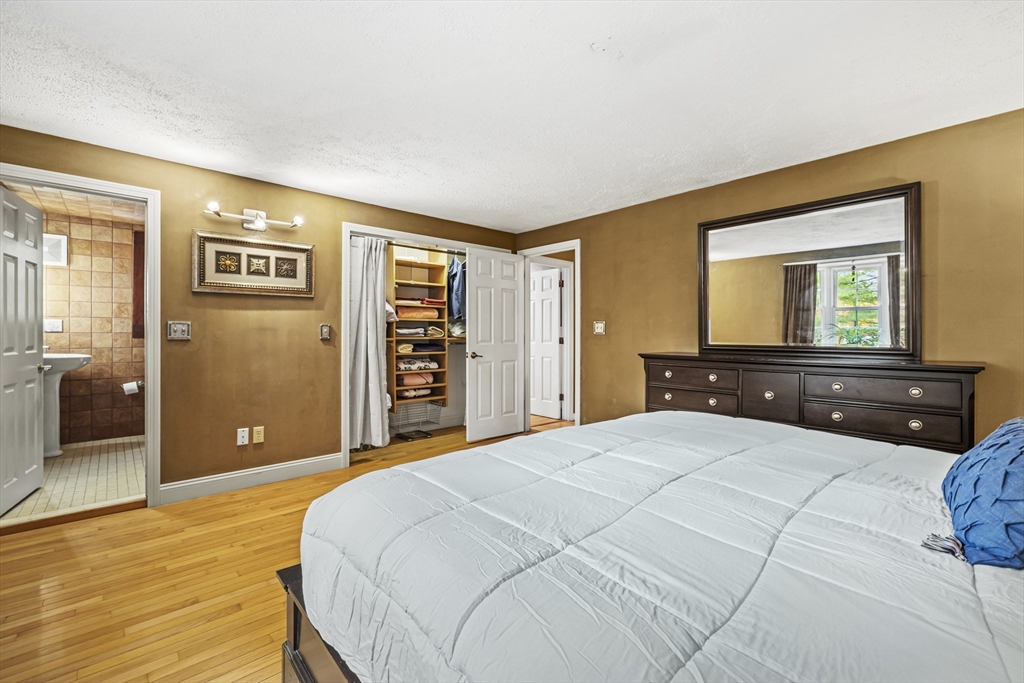 Not your average raised ranch! This custom front-to-back raised ranch offers 7 ms 4 BRs & 2 full baths, incl. a private Main BA.. Nestled at the end of a cul-de-sac & surrounded by conservation land, this home provides exceptional privacy & tranquility.The inviting entryway features double closets as you enter the living room w/floor-to-ceiling newer Andersen windows, Brazilian hardwood floors, and a cozy wood stove. The open floor plan upstairs includes a spacious kitchen with breakfast bar overlooking the liv rm & dining rm w/slider to 2-tier 500 sf deck. Down the hall are three bedrooms—all with hardwood flooring including the Main Bedroom with full BA & heated towel rack. The lower level offers a fourth bedroom, perfect for guests, an office, or flexible living space.Additional highlights include a Buderus boiler w/4 zone heat and an oversized two-car garage under. Set on a magnificent lot, this home combines comfort, craftsmanship, and a serene natural setting.
