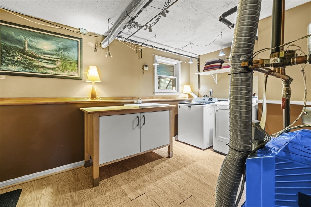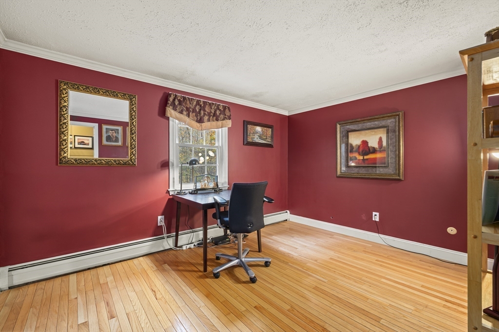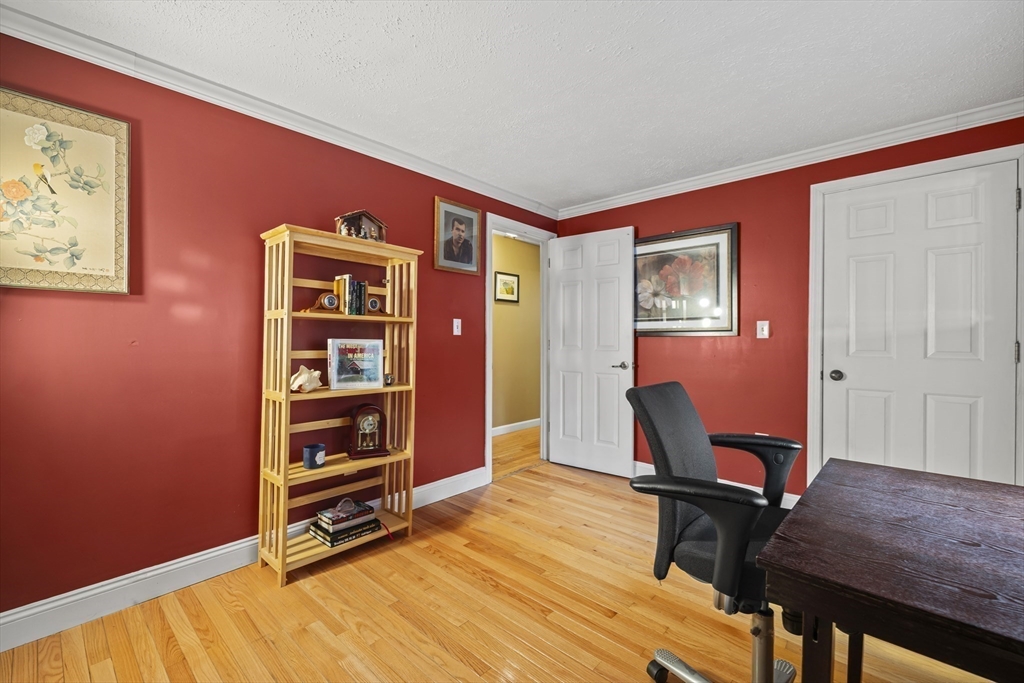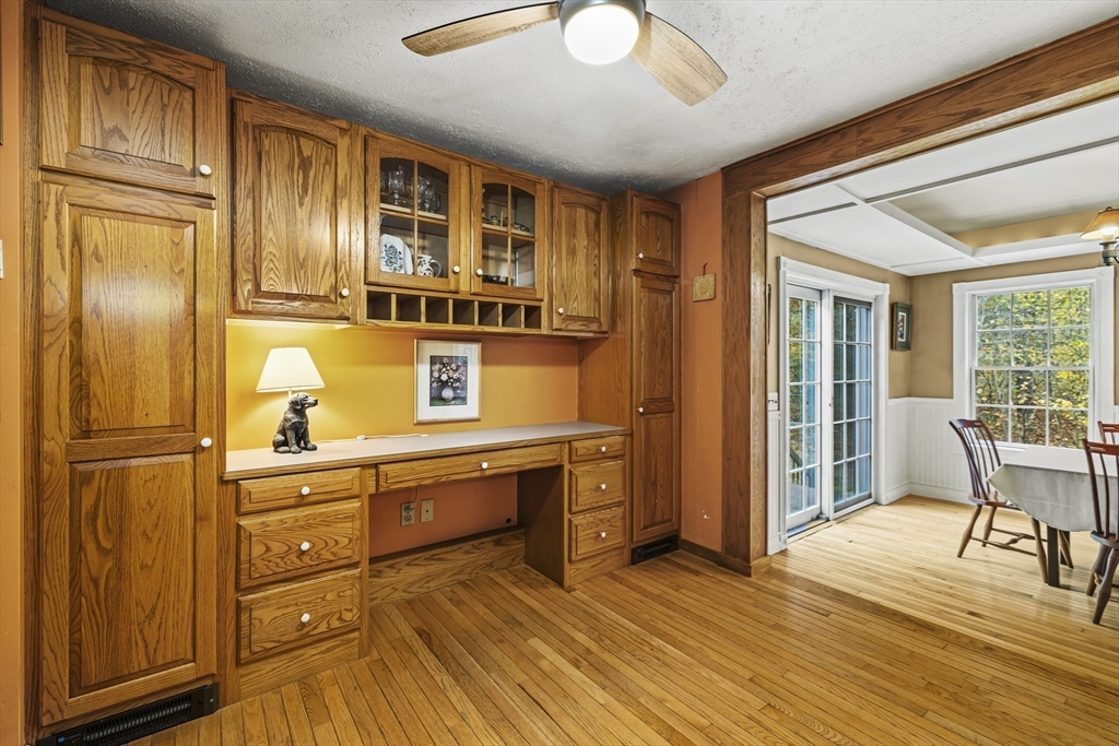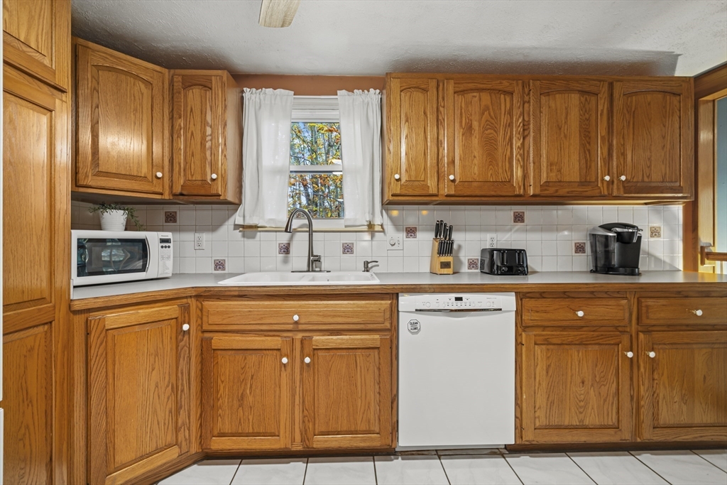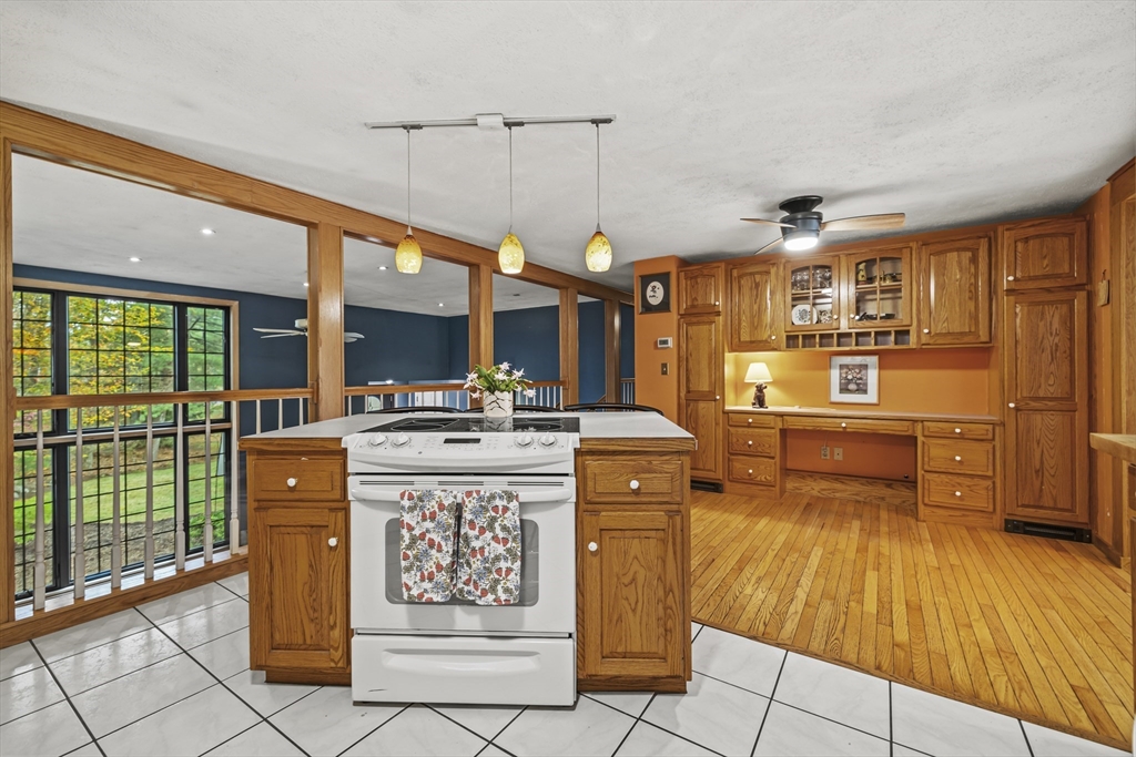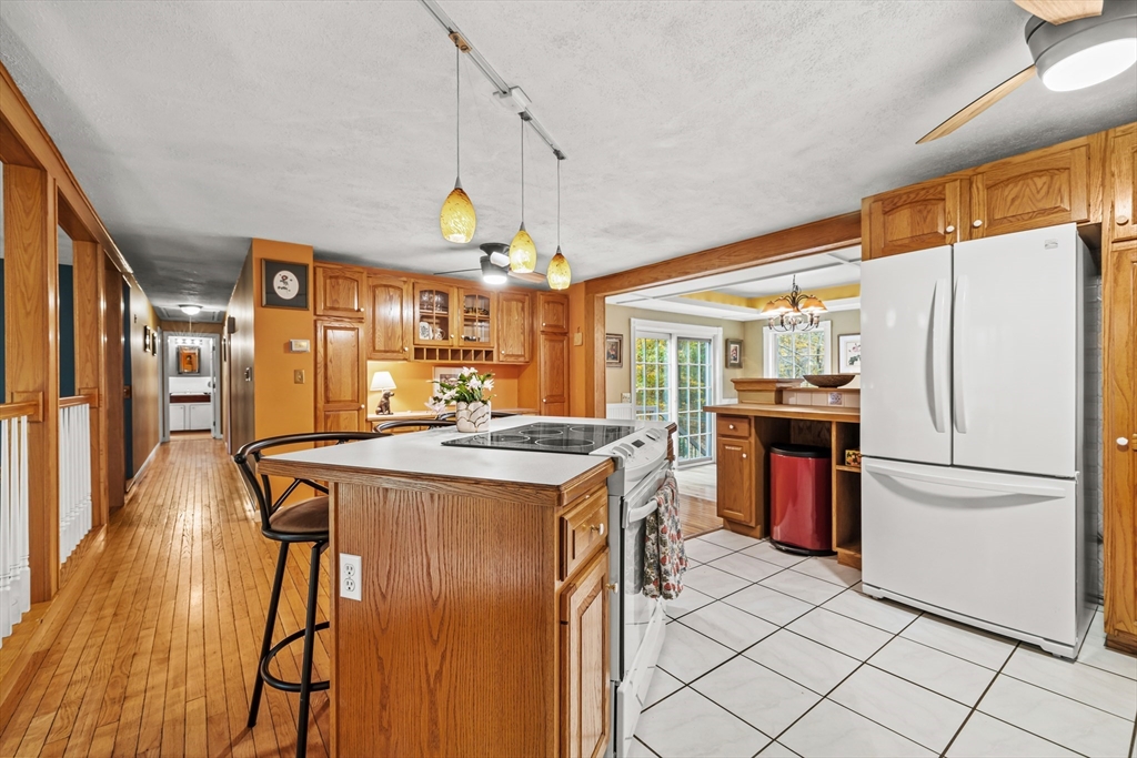 Not your average raised ranch! This custom front-to-back raised ranch offers 7 ms 4 BRs & 2 full baths, incl. a private Main BA.. Nestled at the end of a cul-de-sac & surrounded by conservation land, this home provides exceptional privacy & tranquility.The inviting entryway features double closets as you enter the living room w/floor-to-ceiling newer Andersen windows, Brazilian hardwood floors, and a cozy wood stove. The open floor plan upstairs includes a spacious kitchen with breakfast bar overlooking the liv rm & dining rm w/slider to 2-tier 500 sf deck. Down the hall are three bedrooms—all with hardwood flooring including the Main Bedroom with full BA & heated towel rack. The lower level offers a fourth bedroom, perfect for guests, an office, or flexible living space.Additional highlights include a Buderus boiler w/4 zone heat and an oversized two-car garage under. Set on a magnificent lot, this home combines comfort, craftsmanship, and a serene natural setting.