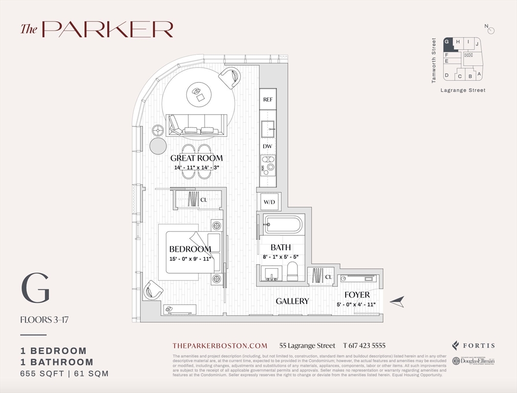 The Parker is a luxury condominium building in the Theater District, featuring 168 articulately designed studios, one bedroom, and two-bedroom penthouse residences. Centrally located, it offers a 24-hour concierge with speakeasy-inspired indoor and outdoor amenities by Zarifi Design. Residences feature a clean design with unexpected details such as sculptural floor-to-ceiling windows and wide-plank white oak flooring. The kitchen boasts a custom Italian marble backsplash with brass finishes and a rich color palette combining materials and textures to create a sleek, dynamic aesthetic. Each layout is efficiently designed to cater to the modern city dweller and offers residents an exclusive lifestyle. Amenities include a cocktail lounge, billiards room, private screening room, co-working space and are rounded out by a state-of-the-art fitness center and a roof deck perched atop Boston Common with spectacular views of the Back Bay, sunsets over the Charles River, and Financial District.