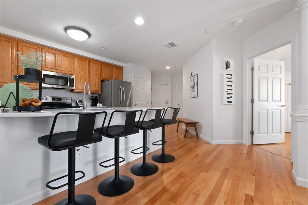 Charming Garden-Style Condo in Newburyport. Experience easy coastal living in this beautifully maintained 1BR, 1BA garden-style condo at Maritime Landing, located in a most convenient part of Newburyport, one of Massachusetts most sought-after seacoast communities. Step inside to find gleaming hardwood floors and an inviting open-concept layout that perfectly balances comfort & style. The spacious living area flows seamlessly into a modern kitchen with sweeping Quartz counters, ideal for entertaining or enjoying quiet evenings at home. Large windows fill the space with natural light, creating a warm, airy atmosphere. Retreat to the generously sized bedroom, offering HW Floors and ample closet space. Additional highlights include underground heated parking as well as beautifully landscaped common grounds that enhance the property’s coastal charm. Located just minutes from Newburyport’s historic downtown, waterfront dining, boutique shopping, and scenic harbor walks. Pets OK.