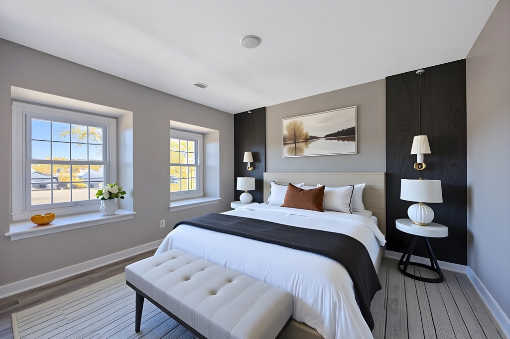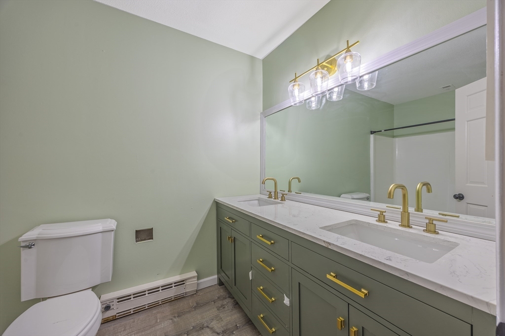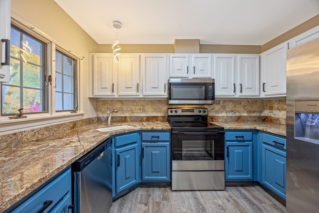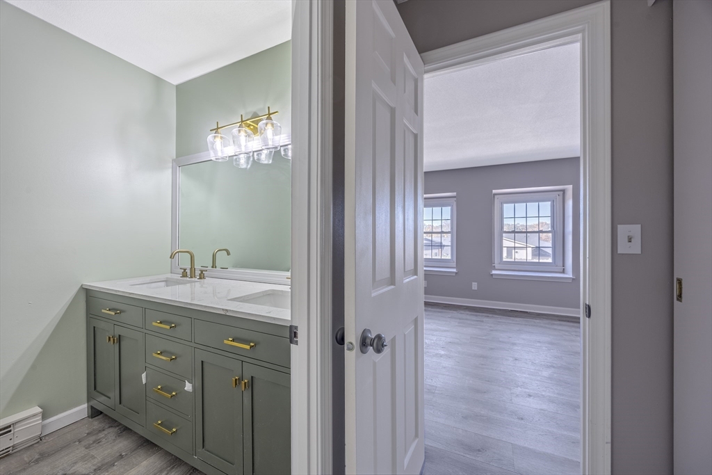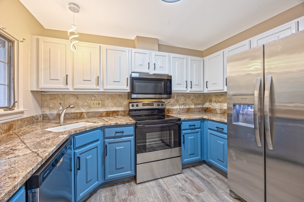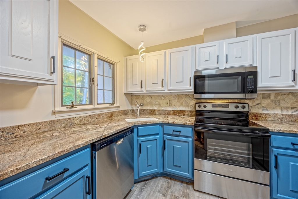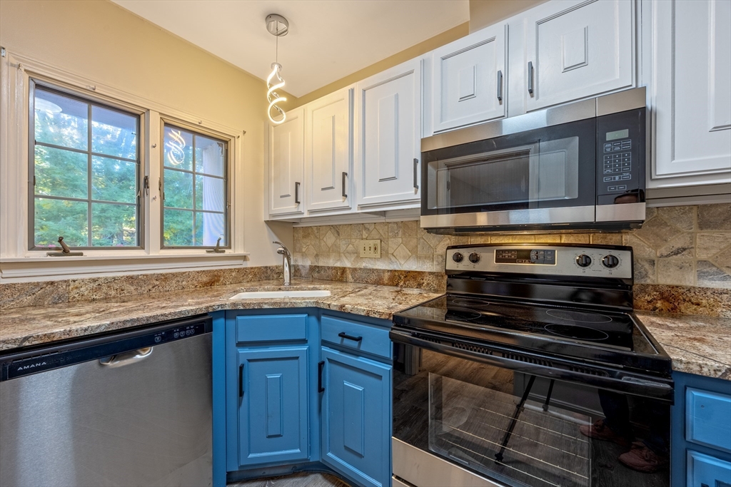 SHOWINGS BEGIN AT OPEN HOUSE SAT NOV. 1st 11-1PM. Welcome home to this fully remodeled condominium. Offering comfortable living within a well-maintained property. Imagine relaxing in the living room, where a fireplace creates a warm and inviting atmosphere, perfect for quiet evenings or entertaining guests. The kitchen features shaker cabinets complemented by stone countertops and a stylish backsplash. The bathrooms provide a spa-like retreat, complete with a double vanity and shower/tub off the main bedroom and single vanity with a walk-in shower at the end of the hallway. This condominium on the second story has a mansard roof and a balcony, adding architectural interest and providing an outdoor space to enjoy. With 1225 square feet of living area, two bedrooms, and two full bathrooms, this residence provides ample space for comfortable living. The property also includes one garage space, offering secure and convenient parking. Easy access to I-91, Route 33,116,202, Village Commons.