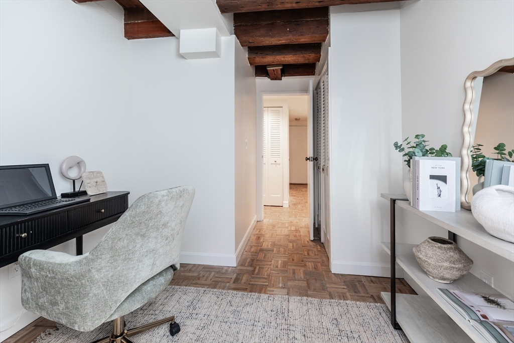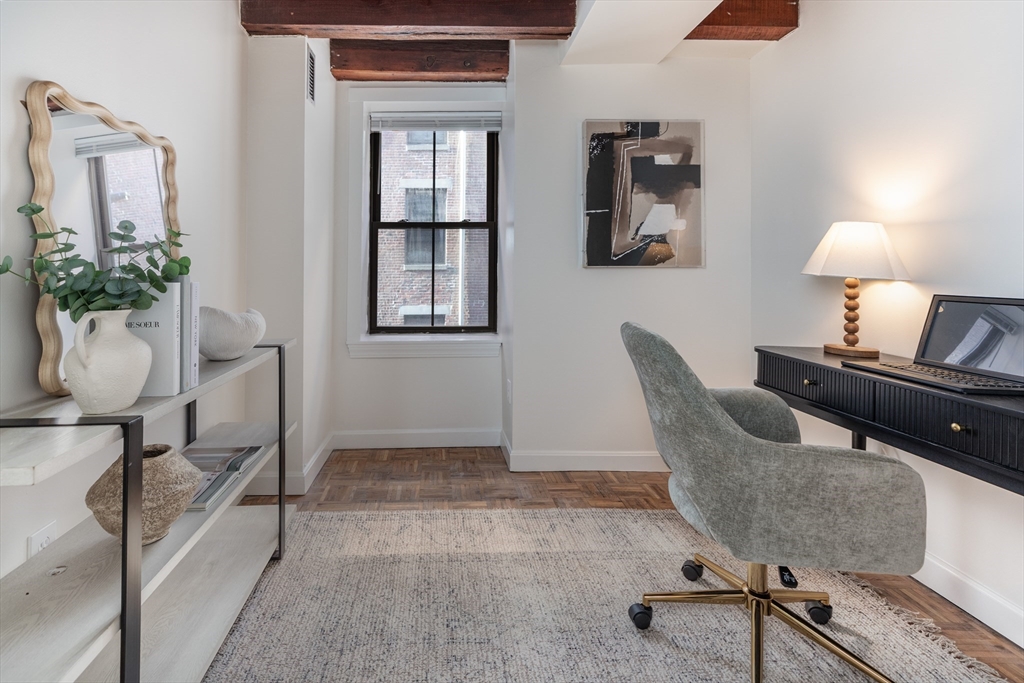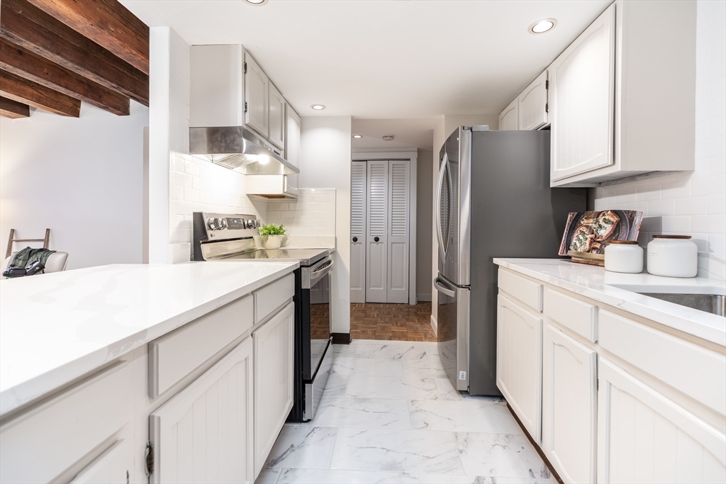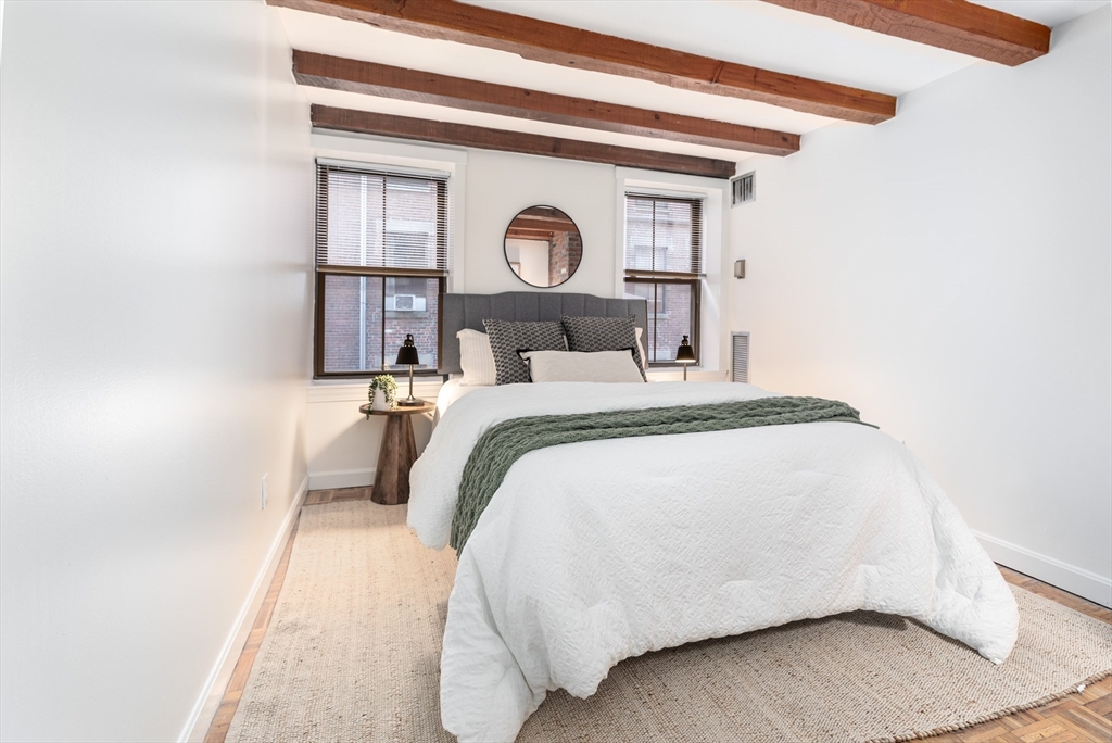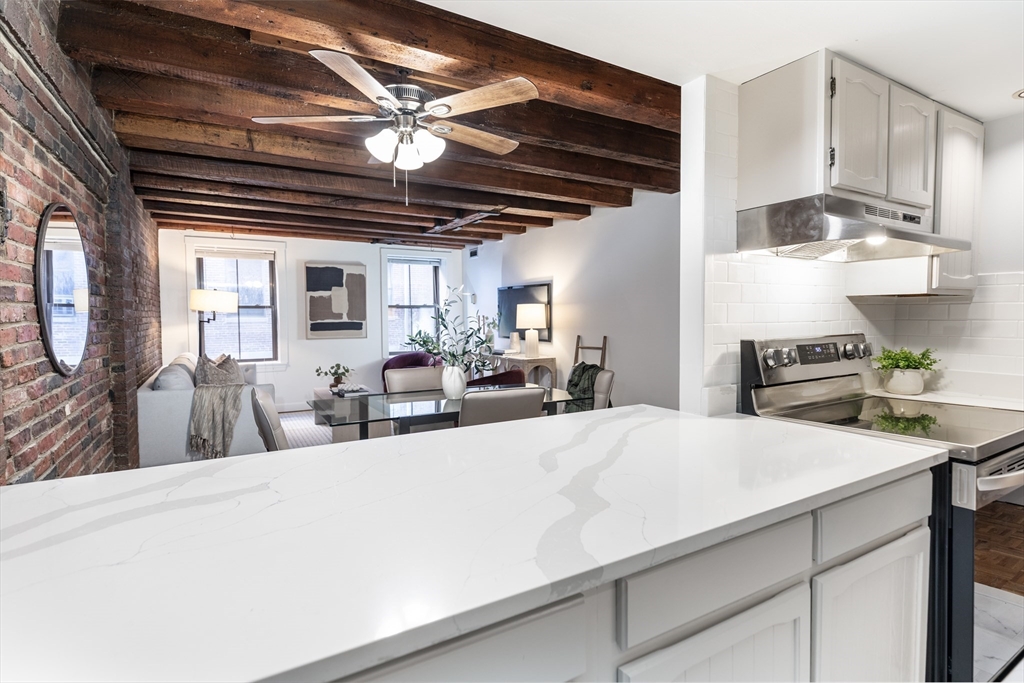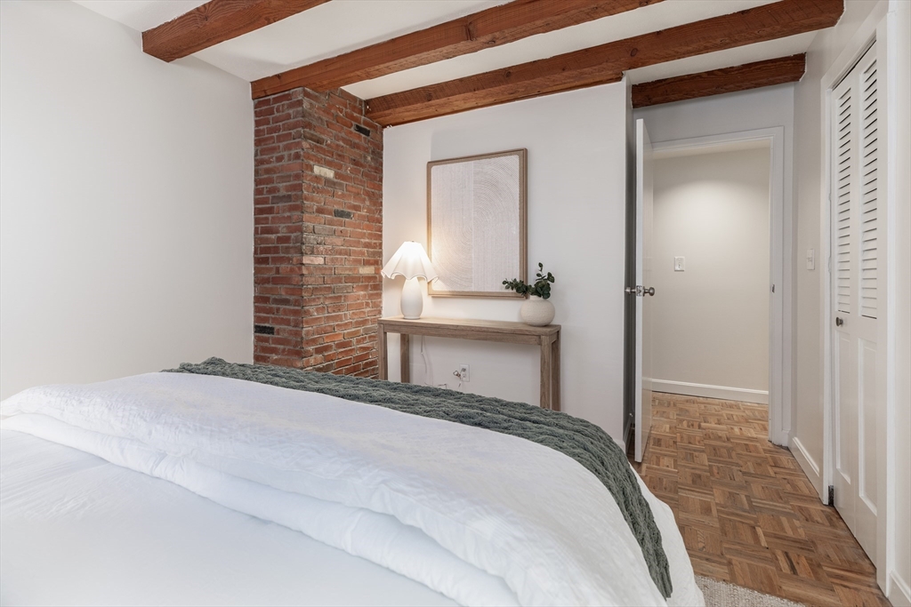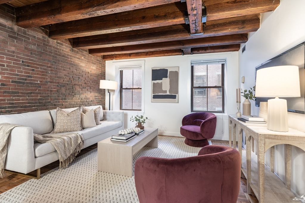 Located on the third floor of a professionally managed, elevator building in the historic North End. The living room offers a welcoming space, enhanced by the character of a beamed ceiling and exposed brick. The kitchen is a chef's delight, featuring elegant stone countertops, stylish shaker cabinets, and a beautiful backsplash; the open kitchen layout creates an ideal space for meal preparation and casual dining. This condominium provides a wonderful floor plan, comprised of two bedrooms and one full bathroom, with a total of 753 square feet of living area just two flights of stairs up or a short elevator ride. This property, built in 1870, is also conveniently located near to the Christopher Columbus park and countless restaurants. Seize the opportunity to own a piece of Boston's history while enjoying modern comfort and convenience in this delightful condominium building.