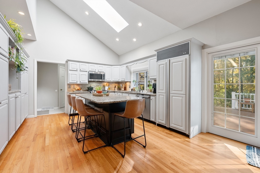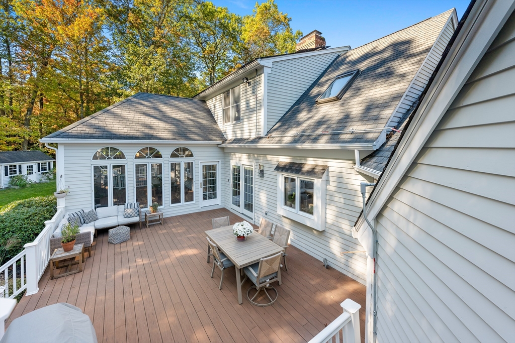 Find Your Way Home to this executive style cape and enjoy a cul-de-sac living in a highly sought-after neighborhood. The kitchen offers granite counter tops, stainless steel appliances, abundant cabinetry, a large center island with prep sink, vaulted ceilings & plenty of natural light. The kitchen flows into a generous dining area, sunroom, and deck, perfect for gathering. The formal dining and living rooms offer additional space to host, highlighted by a cozy wood-burning fireplace. The primary bedroom features a walk-in closet, a spa-like ensuite and access to both the home office/nursery and a private deck. The ensuite includes custom cabinetry, heated flooring & glass framed custom tile shower. Upstairs are 4 additional bedrooms including a suite-style bedroom over the garage with a private bathroom and separate entrance- perfect for generational living or house guests. The finished basement offers even more space with a rec room, exercise area, work shop and extensive storage.