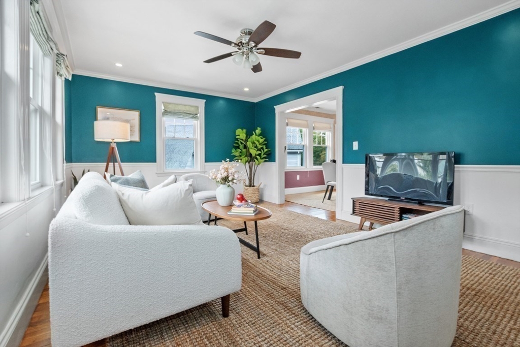 Gorgeous Top-Floor Condo in Prime Roslindale Location! Welcome to this beautifully renovated top-floor condo, filled with natural light and elegant details throughout. Featuring 2 spacious bedrooms and 2 full baths—including a stunning en-suite in primary bedroom—this home offers both comfort and style.The well-designed open floor plan boasts gleaming hardwood floors, custom built-ins, and stylish kitchen, complete with granite countertops and stainless steel appliances. Enjoy newly installed (2025) energy efficient Heat Pump for both heating and cooling, (central air), two deeded parking spaces, and private porch, perfect for morning coffee or evening relaxation.Step outside to a shared yard with garden area, adding touch of nature to city living. Located just steps from the commuter rail, and all that Roslindale Village has to offer, this condo combines convenience, charm, and modern living into one beautiful package.