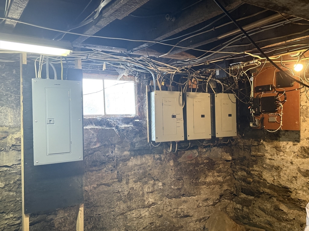 First showings at Open Houses: Sat 11/1 from 11 - 1; Sun 11/2 from 11-1. Solid 3-family in great location with easy access to shopping, highways, entertainment, schools. This is either an excellent investment or a great owner-occupied situation as two of the apartments accommodate three bedrooms (the second floor unit would need the wall put up between the former bedroom and the living room to recreate the third bedroom in that unit). All three kitchens are eat-in and the room Laundry connection in the basement. Recent electrical upgrade: four new meters and circuit breaker panels. Roof on main house approximately 2011. Exterior has a beautiful farmer's porch in the front, vinyl siding, excellent off street parking and a two-car garage with additional storage/workspace.