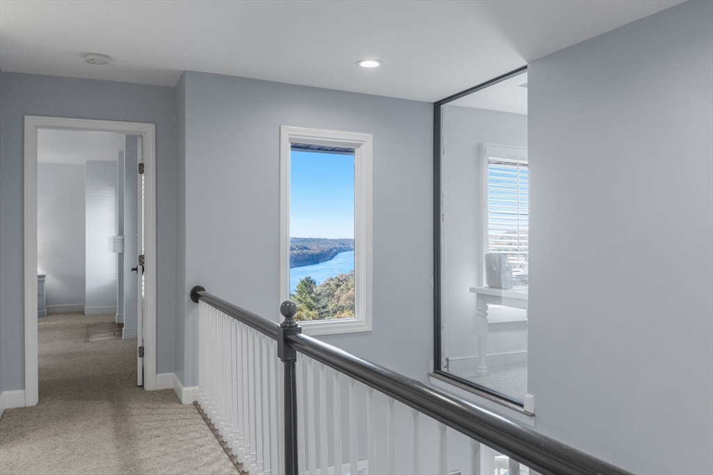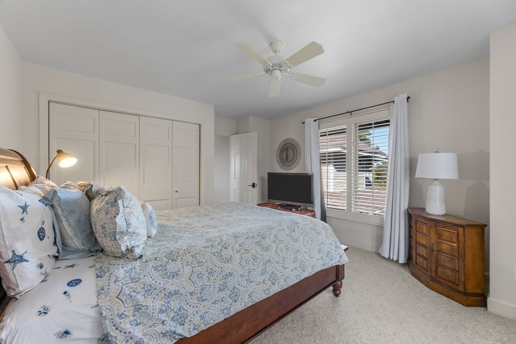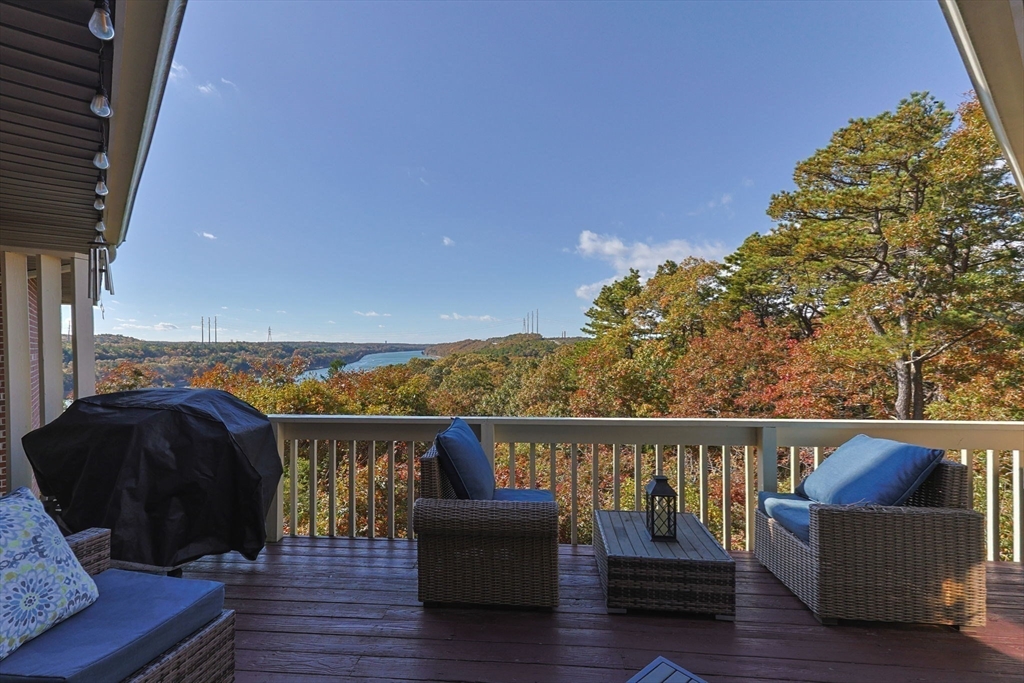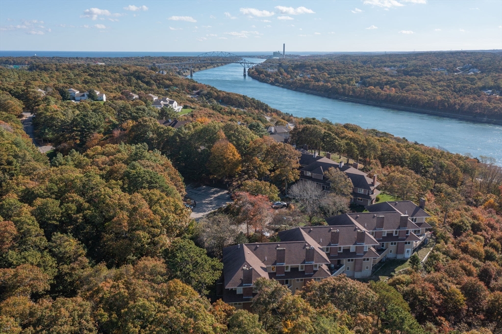 Enjoy spectacular views of the Cape Cod Canal and stunning sunsets from this spacious and elegant townhome in the sought-after Herring Run community. This beautifully maintained home has been refreshed throughout with updated paint and thoughtful enhancements to the kitchen and bathrooms, creating a bright and welcoming atmosphere. The main level features gleaming hardwood floors, an updated kitchen with stainless steel appliances and refreshed counters, a fireplaced family room with custom built-in bookcases, a formal living room with a gas fireplace and deck overlooking the canal, and a formal dining room perfect for entertaining. Upstairs, the inviting primary suite includes an ornamental fireplace, a custom walk-through closet with built-ins, and a spacious bath. The second level also offers a comfortable guest bedroom, a full bath, and a second family room with a gas fireplace — ideal for an office, relaxing, or hosting guests. Perched atop a hill with sweeping views of the canal.