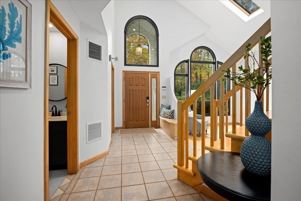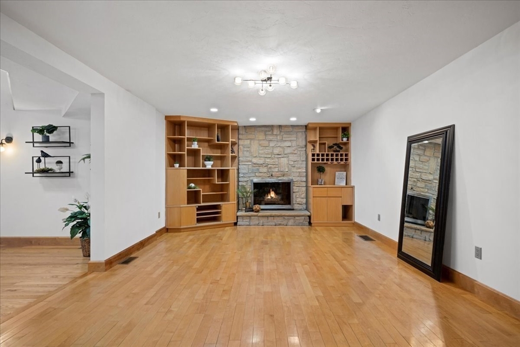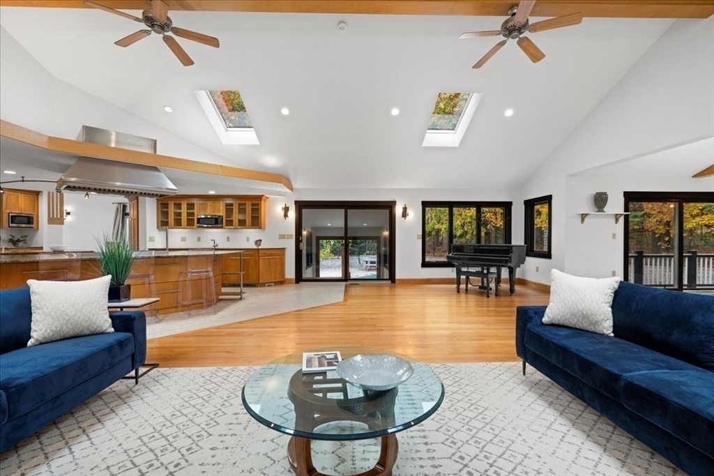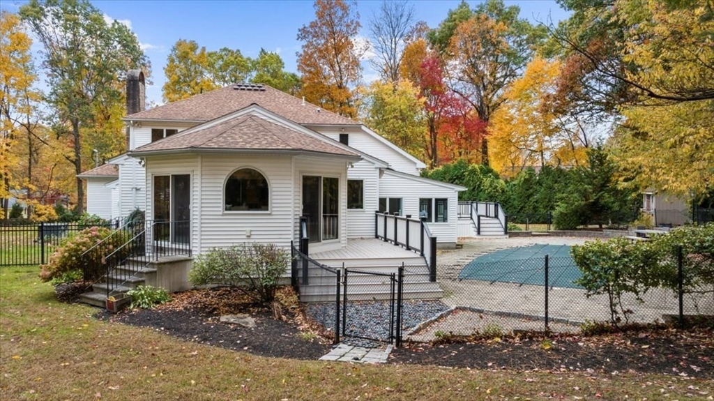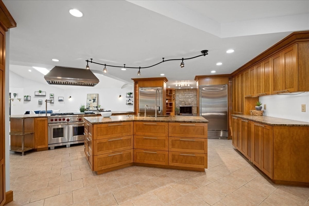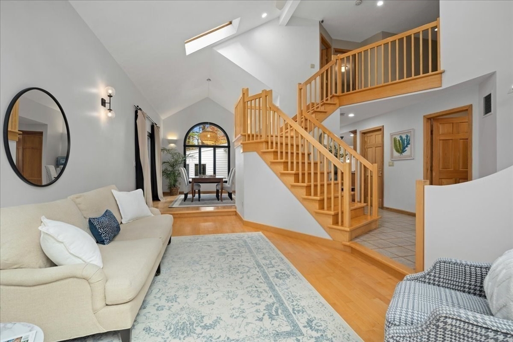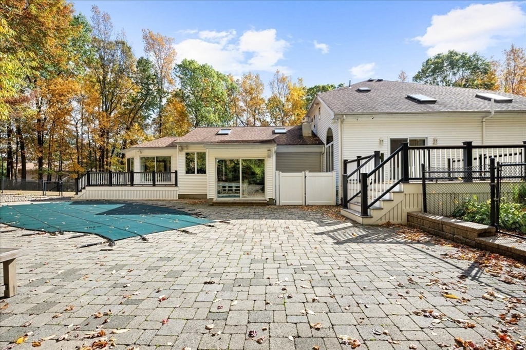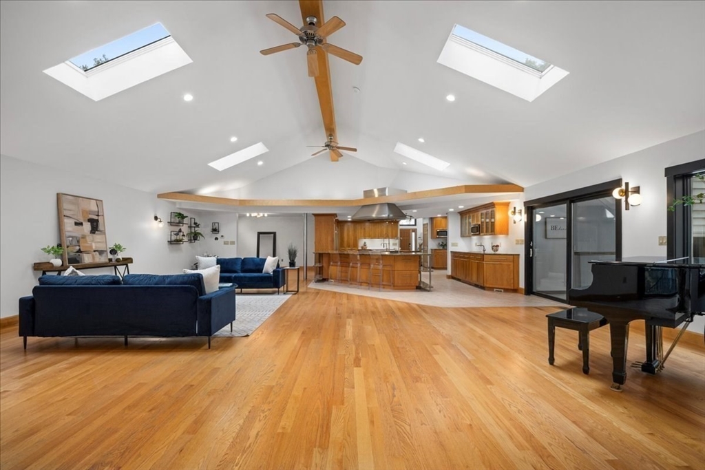 Set back for ultimate privacy- this stunning estate-style property is surrounded by mature trees and features a long, elegant driveway leading to an enchanting modern masterpiece. Inside, an impressive vaulted Great Room with skylights opens to a chef’s kitchen with top-of-the-line appliances, while the vaulted living and dining area showcases beautiful maple floors. The Primary Suite offers hardwood floors, a bay window, and a spa-style bath with soaking tub, separate shower, and double sinks. Step outside to enjoy the heated in-ground pool, expansive patio, and outdoor entertainment area overlooking sweeping lawns. The finished lower level provides exceptional in-law potential with a bonus kitchen, full bath, media room, living room, den, and two additional flexible rooms ideal for offices, guest space, or a fitness area. A truly special property in a fantastic location—private yet convenient, with easy access to amenities. Welcome to 90 Lynnwood Lane.