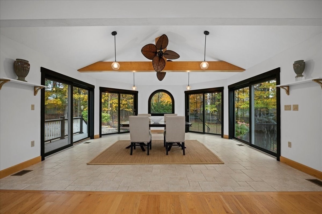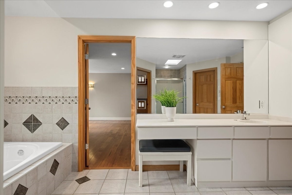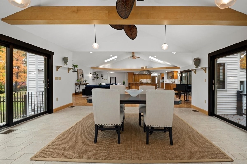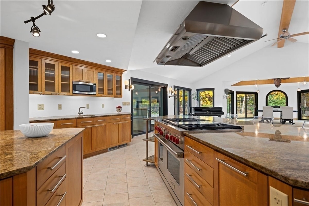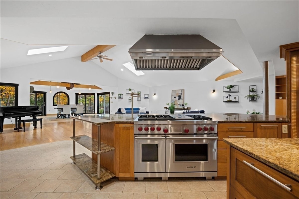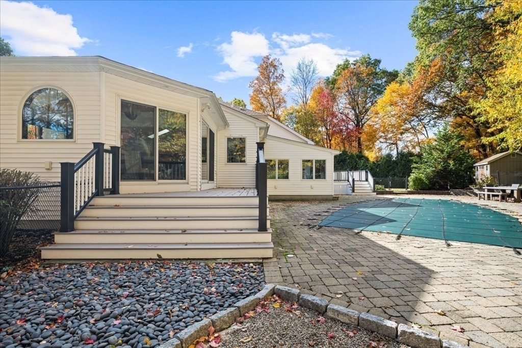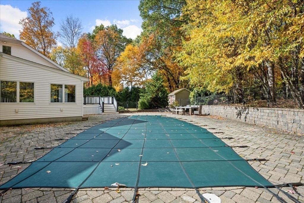 Set back for ultimate privacy- this stunning estate-style property is surrounded by mature trees and features a long, elegant driveway leading to an enchanting modern masterpiece. Inside, an impressive vaulted Great Room with skylights opens to a chef’s kitchen with top-of-the-line appliances, while the vaulted living and dining area showcases beautiful maple floors. The Primary Suite offers hardwood floors, a bay window, and a spa-style bath with soaking tub, separate shower, and double sinks. Step outside to enjoy the heated in-ground pool, expansive patio, and outdoor entertainment area overlooking sweeping lawns. The finished lower level provides exceptional in-law potential with a bonus kitchen, full bath, media room, living room, den, and two additional flexible rooms ideal for offices, guest space, or a fitness area. A truly special property in a fantastic location—private yet convenient, with easy access to amenities. Welcome to 90 Lynnwood Lane.