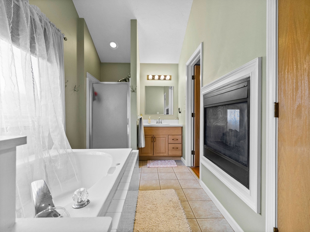Step into this beautifully maintained and sun-filled 2-bedroom, 2.5-bathroom condo, where space, warmth, and convenience come together in one exceptional home. The highlight of the living area is the generous family room, featuring gleaming hardwood floors, a gas fireplace, and huge windows that flood the space with natural light. Flowing seamlessly into the dining area and oak kitchen, complete with a peninsula and breakfast bar, the home is perfect for everyday living and effortless entertaining. Upstairs, the primary suite is a true retreat with a dramatic vaulted ceiling, second fireplace, walk-in closet, and a private en suite bath. The second bedroom also includes its own full bath, ideal for guests or a home office setup. A convenient half-bath is located on the main floor. Additional amenities include a spacious lower-level laundry room and exercise area, adding ease to your daily routine. Town Trash & Recycling pickup Thursday mornings.