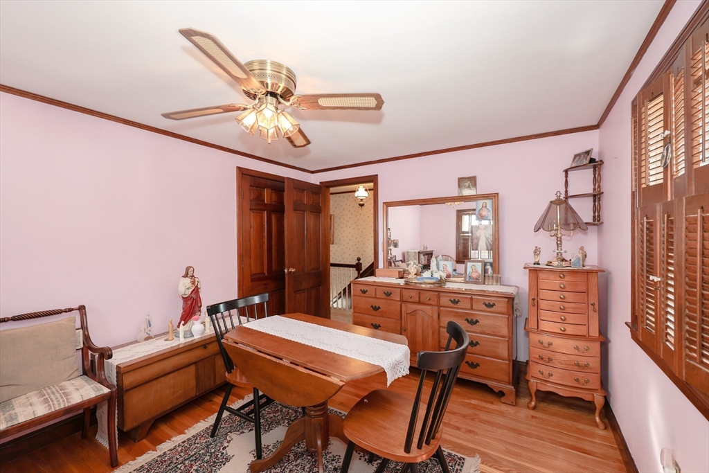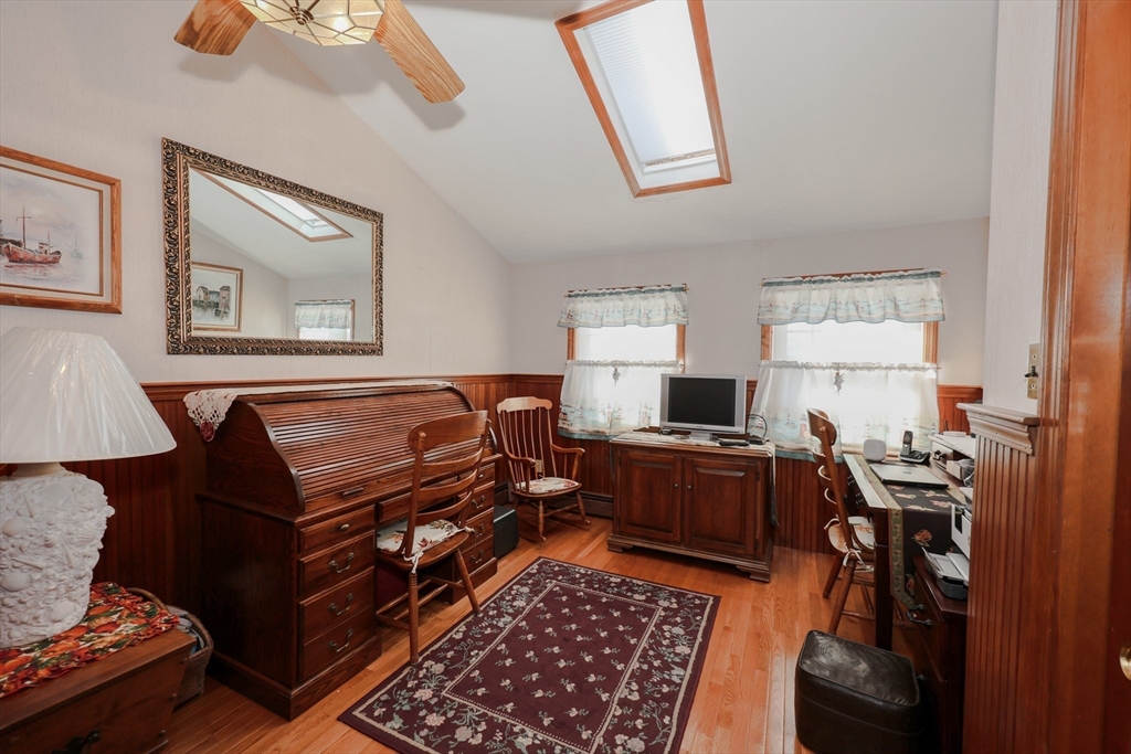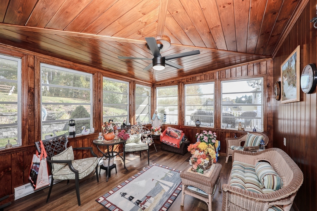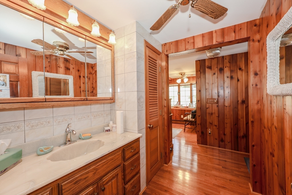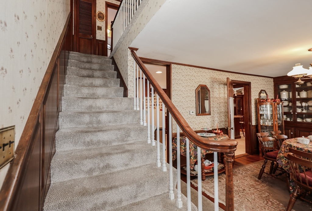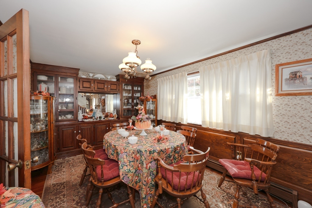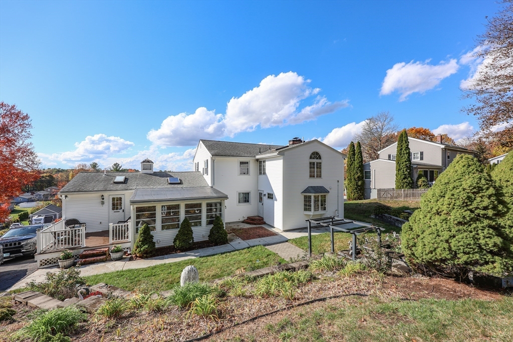 Welcome to this East Dracut colonial, lovingly maintained by the same family since 1963. The home offers a practical layout with hardwood floors, two baths on the main level, a spacious living room, and a pristine kitchen. A dining room with floor-to-ceiling hutch is perfect for hosting, plus a family room with fireplace and bonus room with vanity for guests. Upstairs features three bedrooms and a large full bath with walk-in tub. The partially finished basement includes an extra kitchen/laundry area. Enjoy a four-season porch, composite deck, landscaped yard, two-car garage, and solar panels to reduce energy costs.