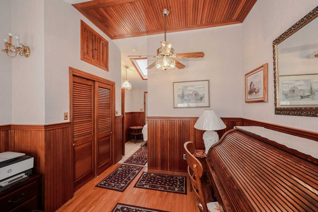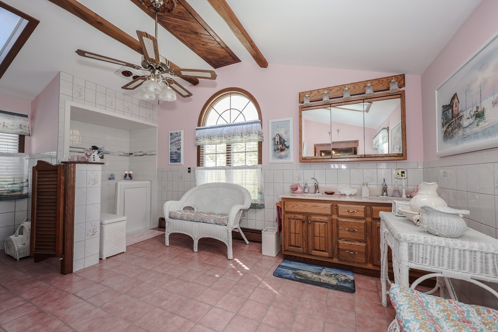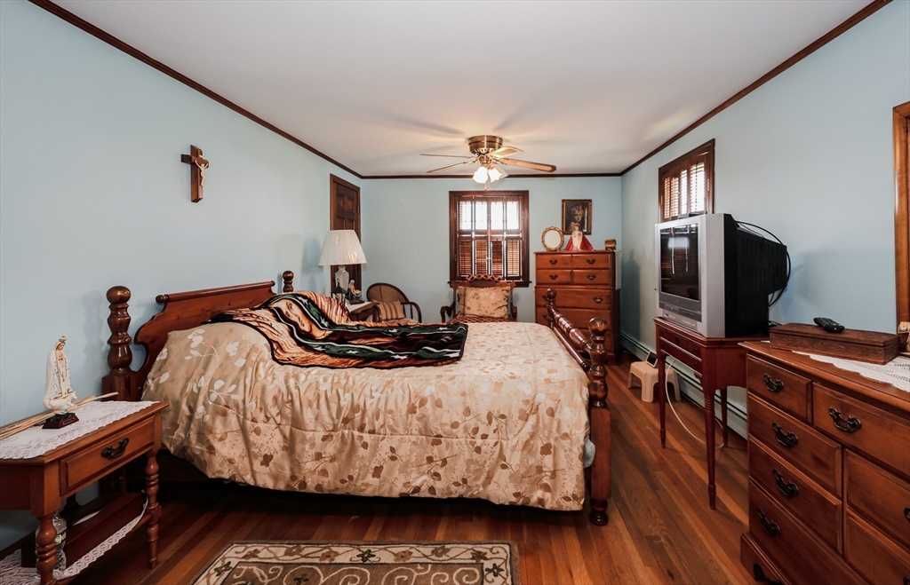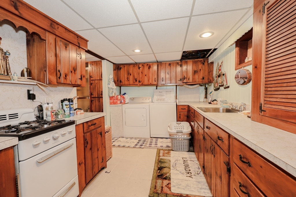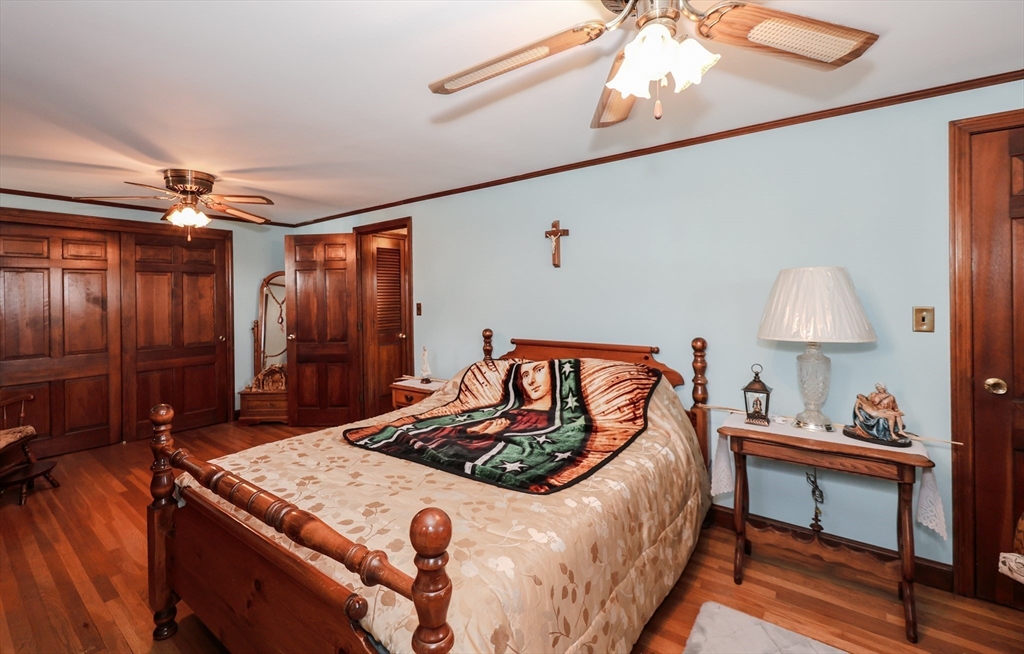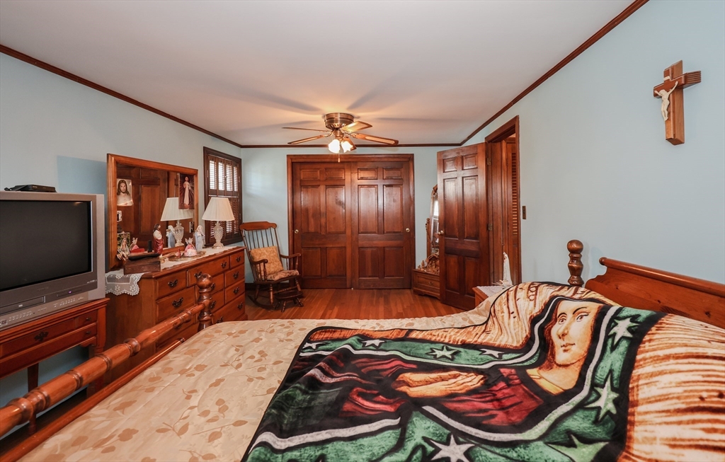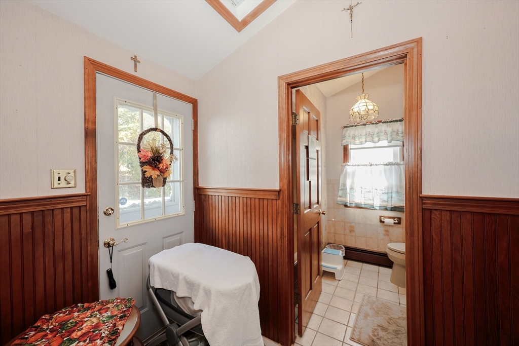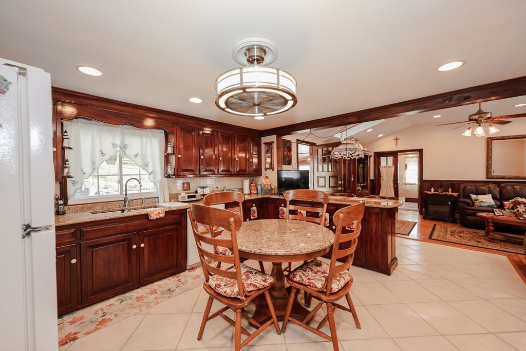 Welcome to this East Dracut colonial, lovingly maintained by the same family since 1963. The home offers a practical layout with hardwood floors, two baths on the main level, a spacious living room, and a pristine kitchen. A dining room with floor-to-ceiling hutch is perfect for hosting, plus a family room with fireplace and bonus room with vanity for guests. Upstairs features three bedrooms and a large full bath with walk-in tub. The partially finished basement includes an extra kitchen/laundry area. Enjoy a four-season porch, composite deck, landscaped yard, two-car garage, and solar panels to reduce energy costs.