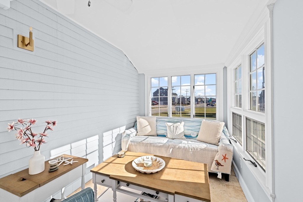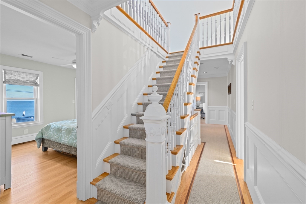 This stately Victorian blends timeless architectural detail with modern updates and Atlantic views. Enter through a warm, radiant-heated sunroom into bright, sun-filled rooms designed for comfortable coastal living and effortless entertaining. The main kitchen is outfitted with stainless steel appliances and a Sub-Zero refrigerator, complemented by a secondary kitchen and butler’s pantry for seamless meal prep and service. A large living room with a custom bar supports relaxed entertaining year-round and the dining room frames waterfront vistas. The second floor hosts the primary bedroom with walk-in closet and a Juliet balcony that captures ocean breezes. Two additional second-floor bedrooms provide private, well-proportioned sleeping quarters. The third floor adds a new sauna and flexible living space & extra sleeping rooms perfect for guests! Move-in ready and well suited as a primary residence, a seasonal retreat, or an income-generating rental. Make it yours before spring market!