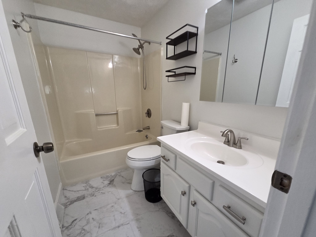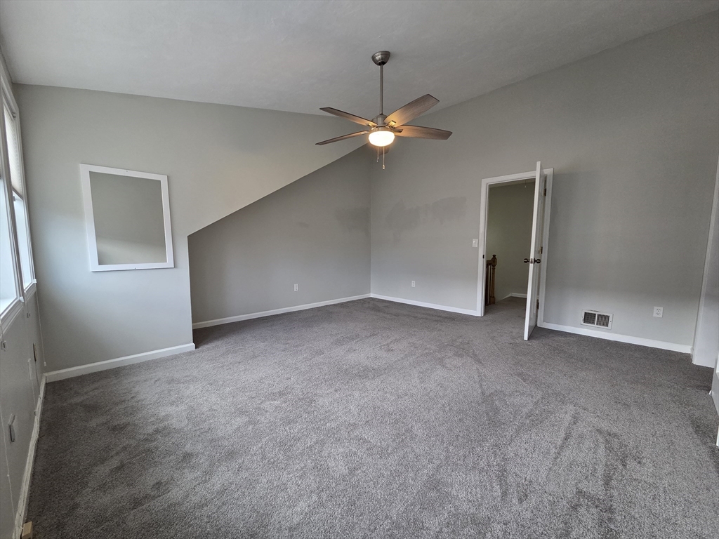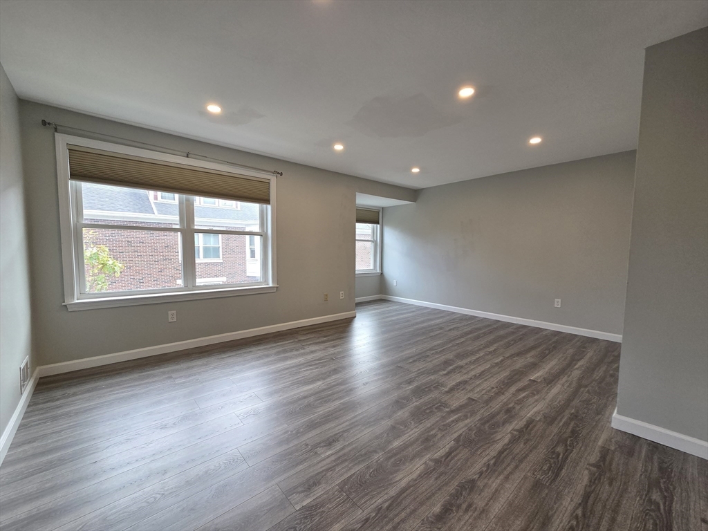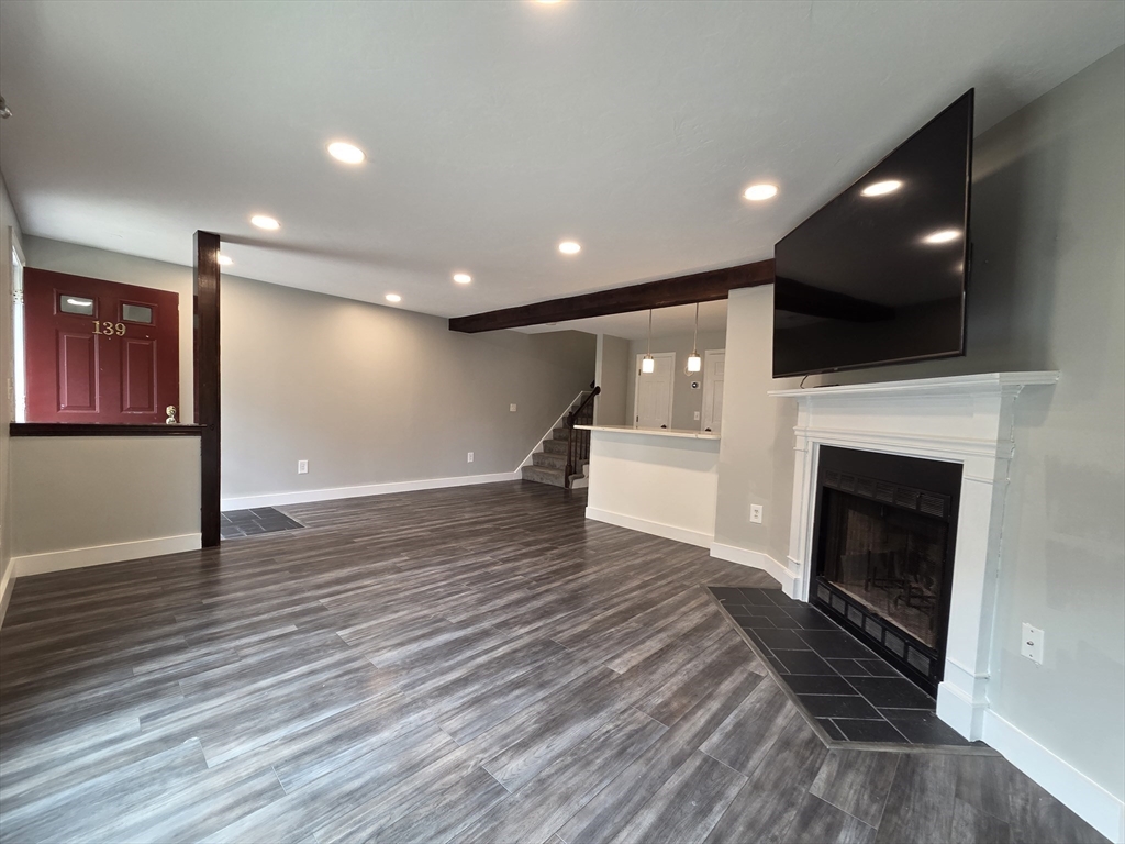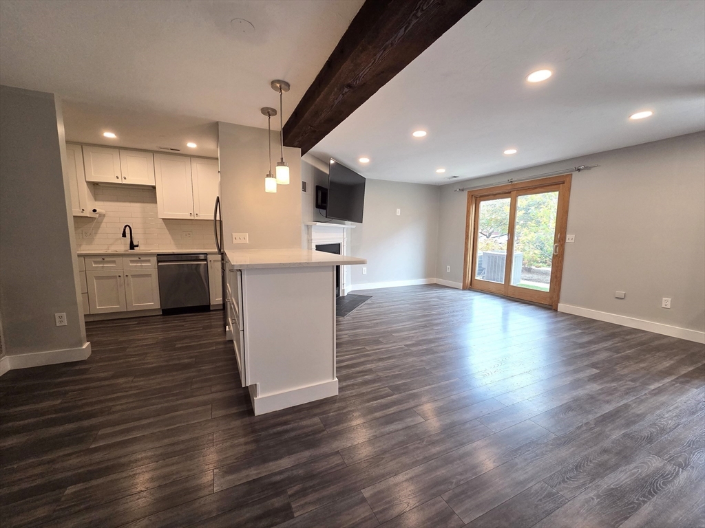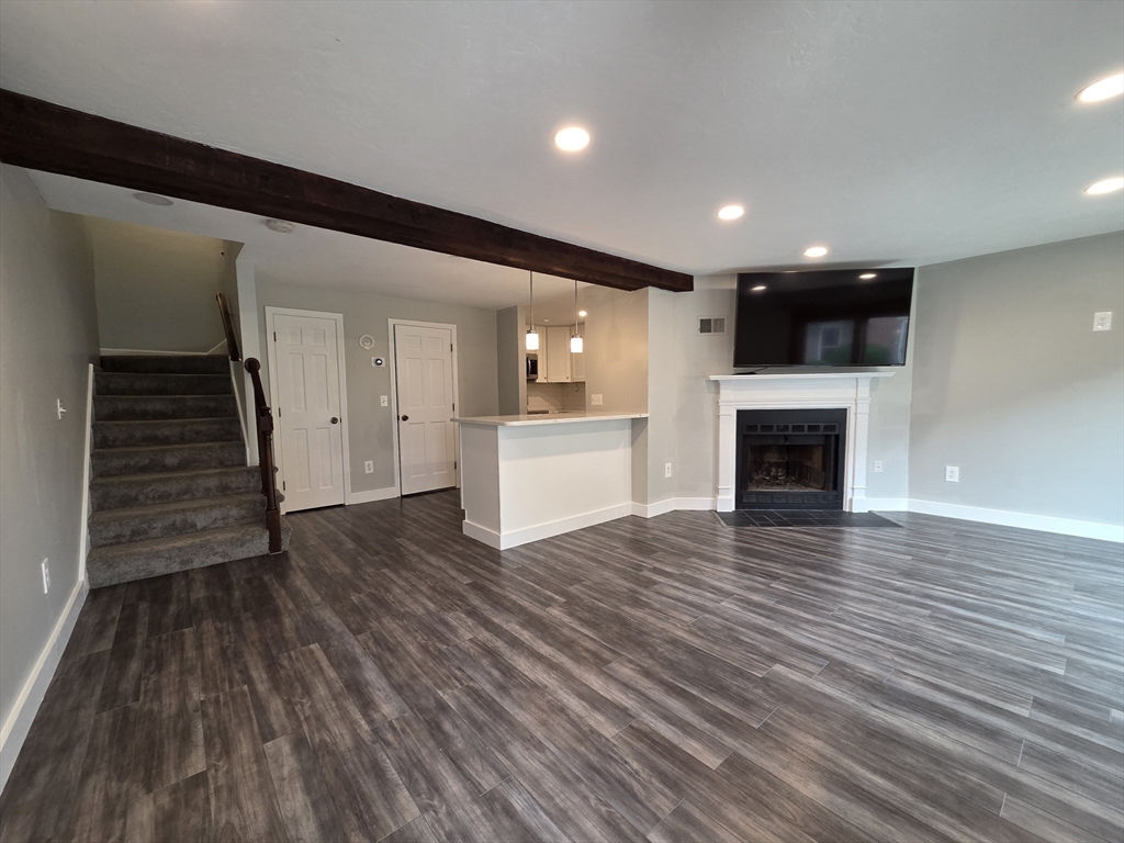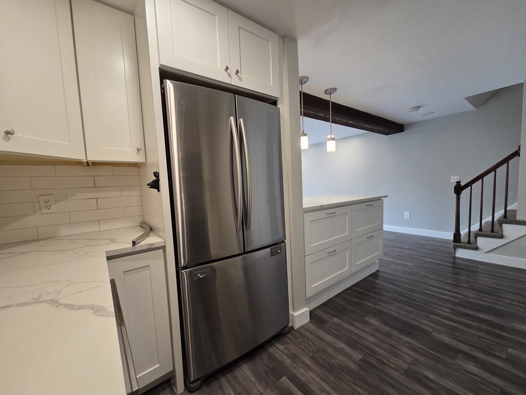2 BR Townhouse rental in sought after Louisburg Square. Nicely updated with modern kitchen, white cabinets and quartz countertops. Open floor plan offers a fresh and modern feel with fireplaced living room. 2nd level has laundry room, full bath and nice sized bedroom. 3rd fl offers another full bathroom and master bedroom with cathedral ceilings and nice sized closet. Conveniently located near T and highways. 2 car off street parking. Good credit and references required.