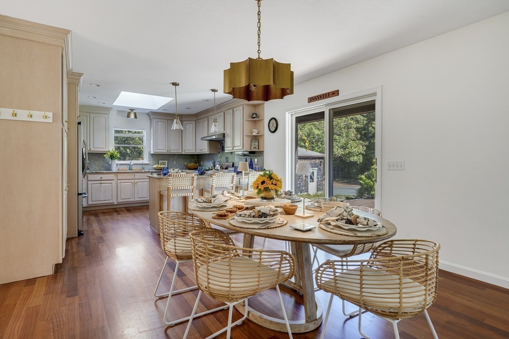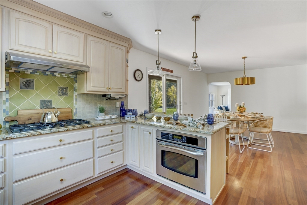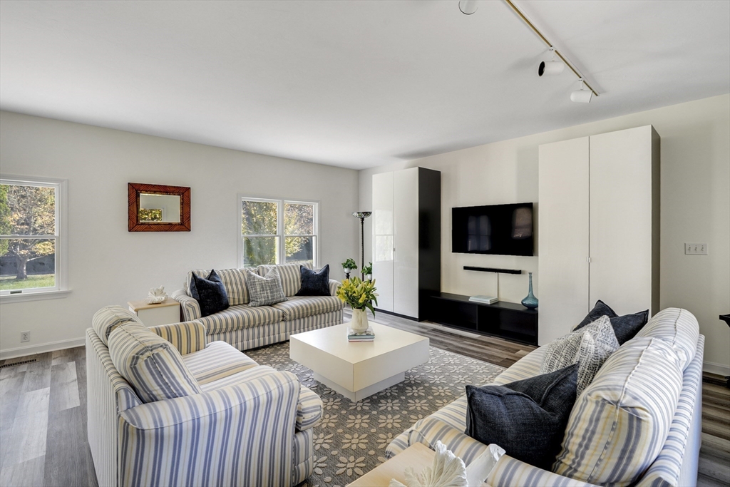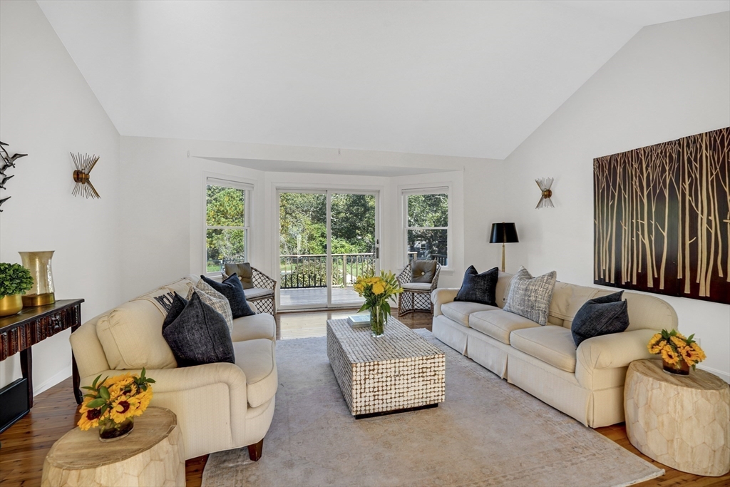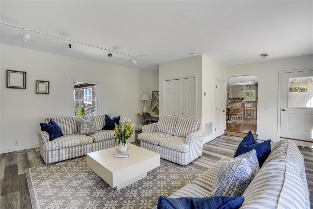 Your private oasis with a POOL awaits in this beautifully updated Lagoon Hills retreat on over 1.5 acres. Enjoy a carefree, single-level lifestyle featuring an open-concept kitchen and dining area, spacious living room, office and exercise room — all thoughtfully designed for comfort and flow. Step outside to a stunning backyard anchored by a sparkling pool, surrounded by decks, patios, and lush landscaping with stone walls, specimen trees, and a goldfish pond with a waterfall. Additional amenities include a pool house, a detached one-car garage/workshop, an oversized two-car garage, and a full basement—perfect for extra storage or hobbies. With private access to Lagoon Pond, this park-like property offers the ultimate blend of indoor-outdoor living and tranquility. A rare Vineyard gem designed for entertaining, relaxation, and easy island living.