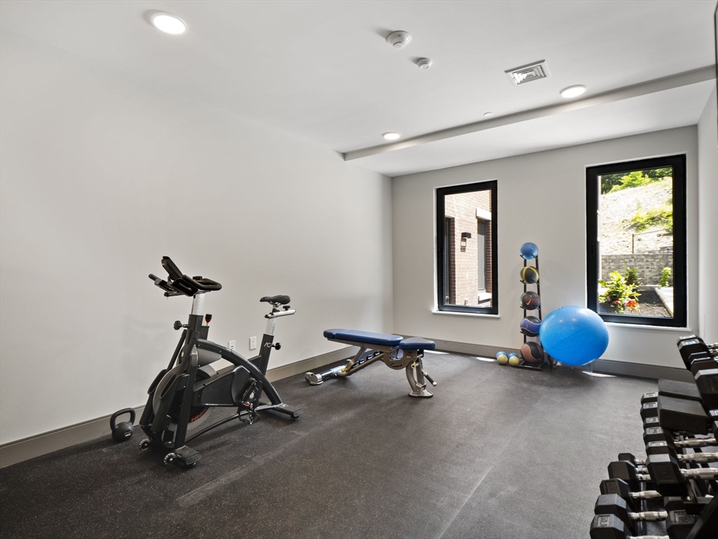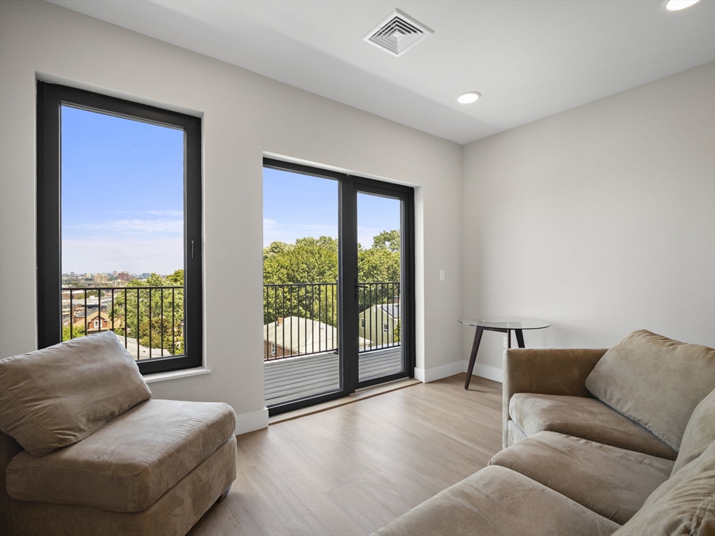 Rare chance to live in brand new PENTHOUSE level unit has a huge wraparound private deck with city views! This bright and open 1-bedroom, 1-bath unit is located in the heart of Brighton steps from Comm Ave. Hardwood floors throughout, large windows, and a modern kitchen equipped with stainless steel appliances and quartz countertops. The spacious bedroom has a walk-in-closet. Enjoy all of the common high-end amenities including a gym, ground level patio and spacious roof deck with city views. Unit comes with a washer & dryer, central air/heat, and an assigned parking space in the heated garage. The building is professionally managed. Reduced security deposit rate for those who have excellent credit and well-established work history.