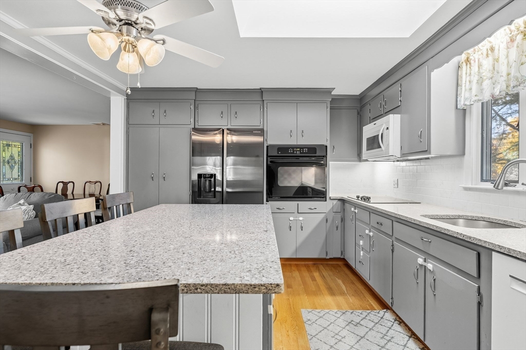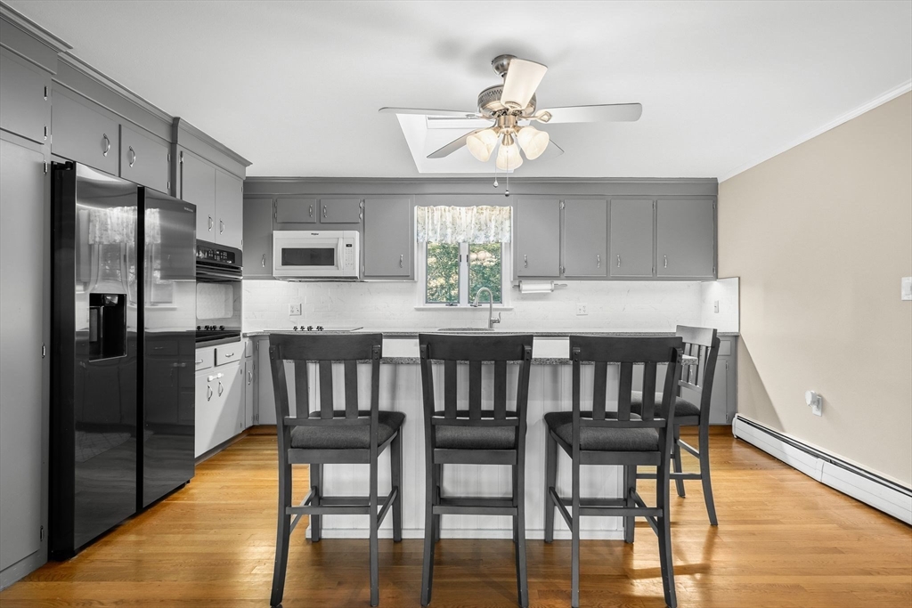 Welcome to West Bridgewater! This adorable 3 bedroom ranch home has tons of curb appeal and sits proud on a gorgeous country corner lot with mature landscaping. There is room for everyone in this expanded home. Step from your welcoming front porch into the oversized sunroom with vaulted ceilings that is fantastic for entertaining with access to the new composite deck. Move into the well-appointed kitchen with newly added island and featuring stone counters and newer appliances. Enjoy an open concept main floor layout as you move from kitchen into the living room anchored by a charming fireplace with built-ins and into the dining space beyond. The first floor offers 3 generous bedrooms and an updated bath. The basement features additional remodeled living space with extra storage and laundry space. Updates include central air and newer septic. This home has it all! Do not miss you chance for quiet comfortable living just minutes from shopping, schools, and highway access.