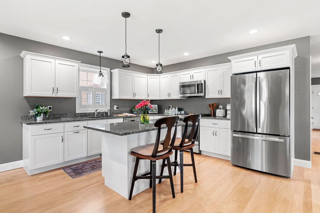Do not miss your chance to age in style in East Bridgewater! This detached 55+ unit in desirable Meadowbrook Estates is only 4 years old and in near perfect condition. You'll instantly feel at home stepping off the cozy front porch into your open concept living, dining and kitchen space. Enjoy a modern well-equipped kitchen with stainless appliances, spacious island, and stone counters and separate dining area. Just down the hall, an impressive primary suite awaits, along with a guest bath, main floor laundry, second bedroom and cute den space. Step out onto your composite deck to enjoy the peaceful setting at the end of a long day. The enormous unfinished basement offers endless possibilities for expansion. Meadowbrook Estates offers low condo fees and is pet friendly! Set up a private tour today!