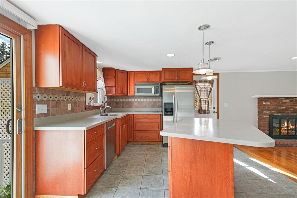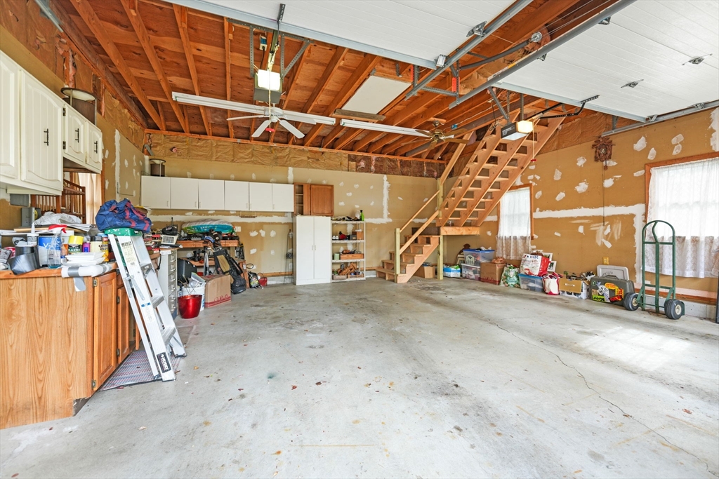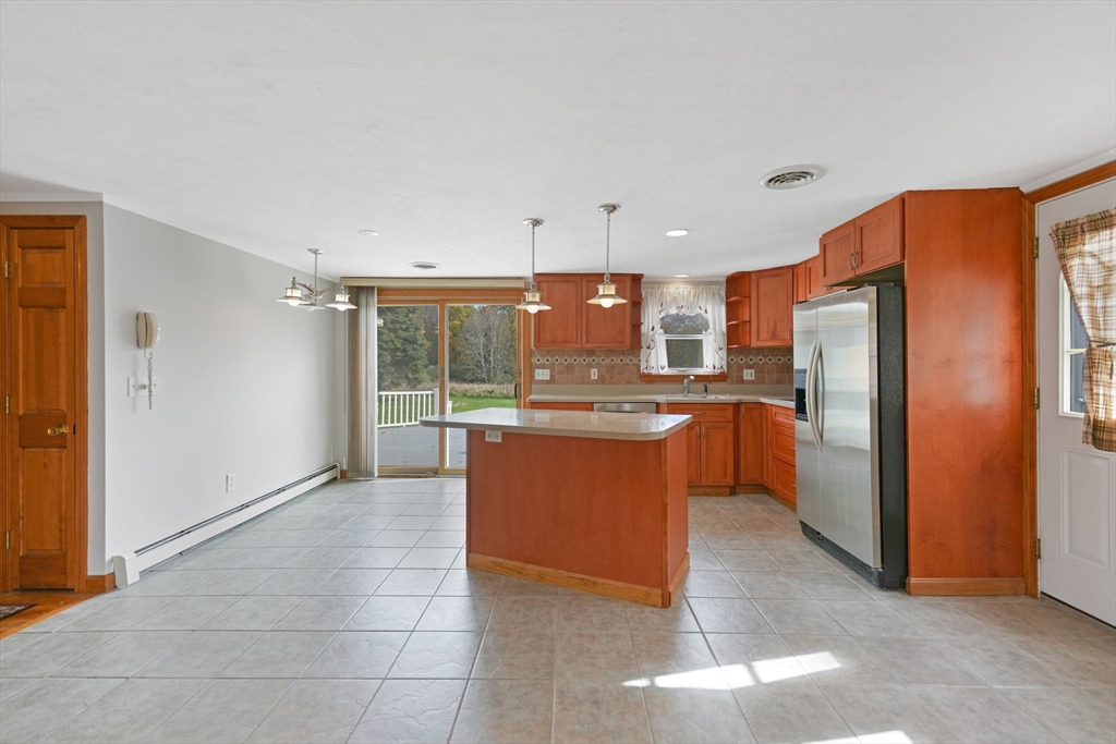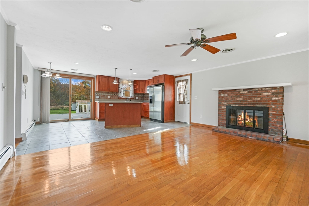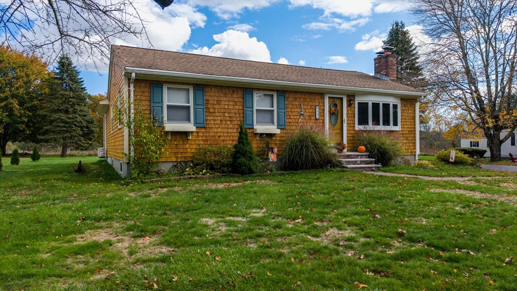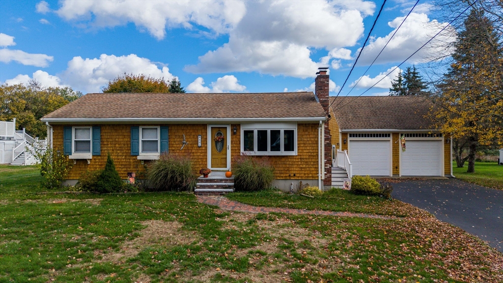 Well-Maintained Expanded Ranch including a detached Garage with Loft. Located in Bristol County’s scenic farming community, this single-family ranch offers 3 bedrooms, 2 full bathrooms, and 1,248 sq ft of comfortable living space. The living room welcomes you with a warm fireplace creating an inviting space to relax and entertain. The kitchen features shaker cabinets, quartz countertops, a stylish backsplash, and a large island with bar seating—ideal for meal prep and casual dining. The spacious primary suite includes vaulted ceilings, private deck access, and a spa-like en-suite bath with radiant heat, walk-in shower, and jetted tub. Also, features 2 skylights, filling the space with natural light. Basement partially finished. Amenities include a 30-foot above-ground pool, 16' x 8' shed, and a 24' x 24' two-stall garage with side entry, garage with a full staircase leading to a loft offering excellent potential for an accessory dwelling unit, studio, or workshop. New Septic included.