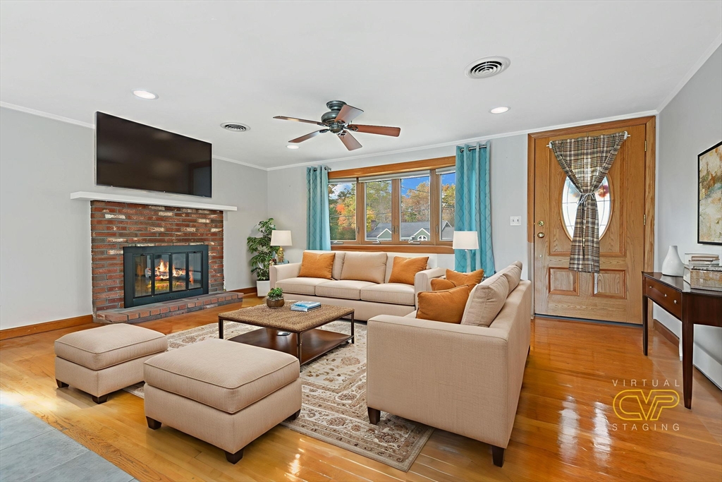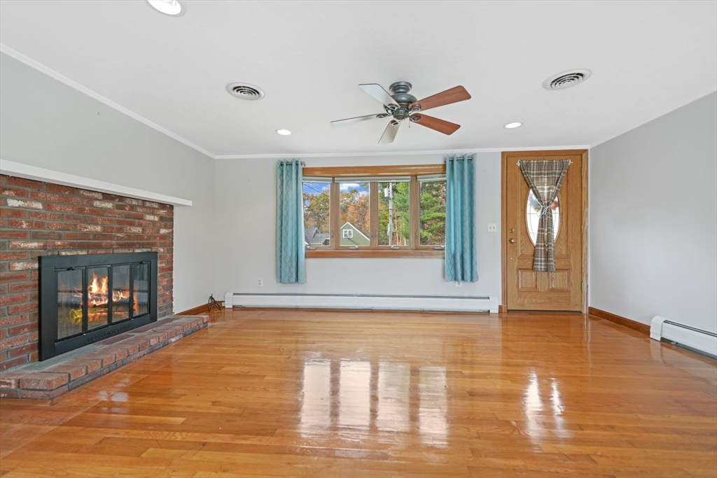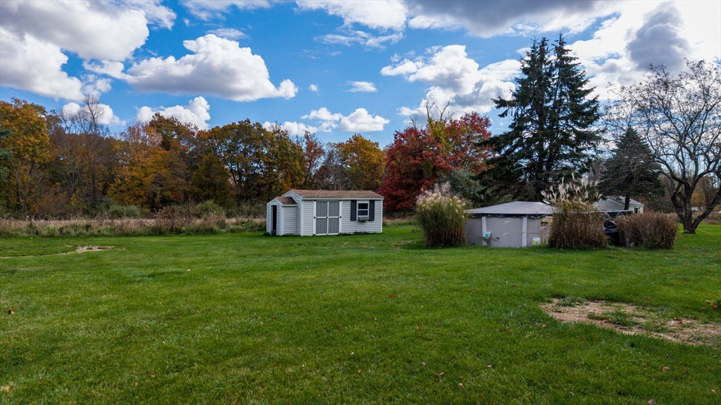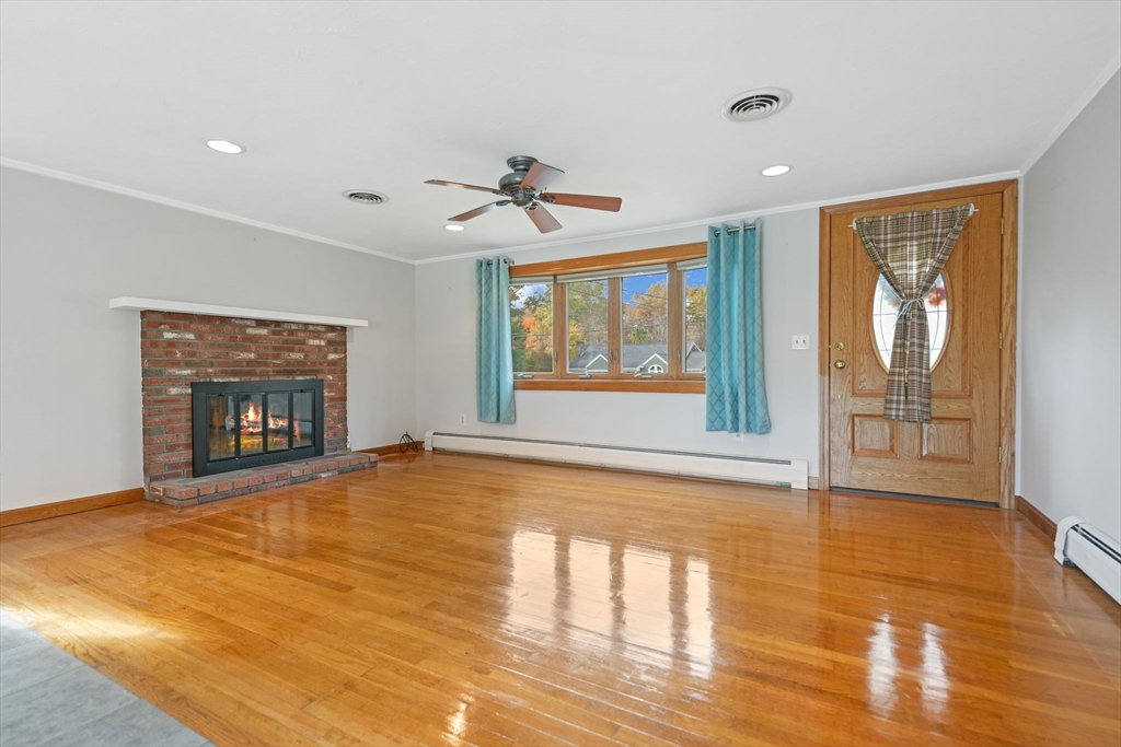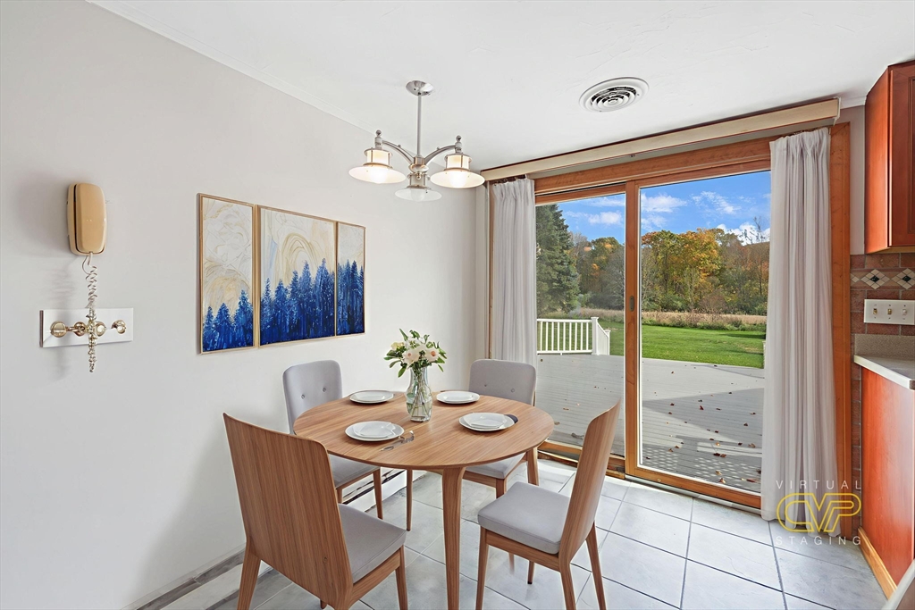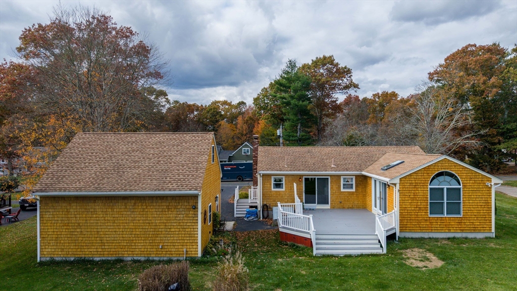 Well-Maintained Expanded Ranch including a detached Garage with Loft. Located in Bristol County’s scenic farming community, this single-family ranch offers 3 bedrooms, 2 full bathrooms, and 1,248 sq ft of comfortable living space. The living room welcomes you with a warm fireplace creating an inviting space to relax and entertain. The kitchen features shaker cabinets, quartz countertops, a stylish backsplash, and a large island with bar seating—ideal for meal prep and casual dining. The spacious primary suite includes vaulted ceilings, private deck access, and a spa-like en-suite bath with radiant heat, walk-in shower, and jetted tub. Also, features 2 skylights, filling the space with natural light. Basement partially finished. Amenities include a 30-foot above-ground pool, 16' x 8' shed, and a 24' x 24' two-stall garage with side entry, garage with a full staircase leading to a loft offering excellent potential for an accessory dwelling unit, studio, or workshop. New Septic included.