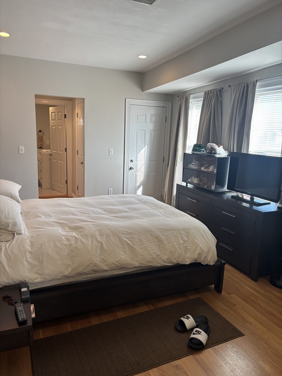 Top floor, open floor plan 2 bed 2 bathroom condo featuring AC, gas fireplace, in unit laundry featuring updated kitchen and baths. Private roof deck with city views. Spacious primary bedroom 16' by 10' with excellent closets and ensuite bathroom. Currently leased to 8/31/26 for $3,400. Nice opportunity for an investor. Located just off East Broadway near I street. Playwright, American Provisions, Stop & Shop all nearby.