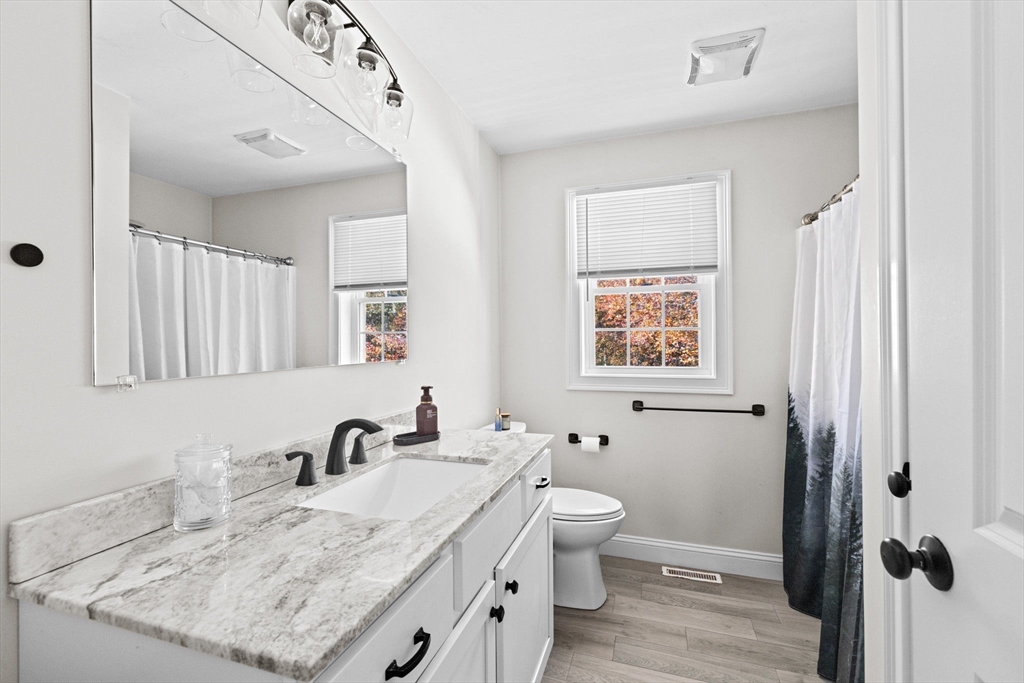 Nearly new and central to everything! This pretty 2022 home has everything you need and is ready to go. New solar panels add to the super efficiency of this sweet property. Open concept living room flows to eat-in kitchen with sliders to deck and easy living spaces. Three bright bedrooms, two full baths upstairs plus another half bath for your guests on the main floor. The walk out basement has a finished area for playroom and utility area for laundry and extra storage. A newly fenced yard provides privacy in the rear of property abutting natural greenspace. Sidewalks lead to tree lined neighborhood, conservation land, school or even nearby golf course! Less than 5 minutes to commuter train, and easy access to both highway and medical facilities.