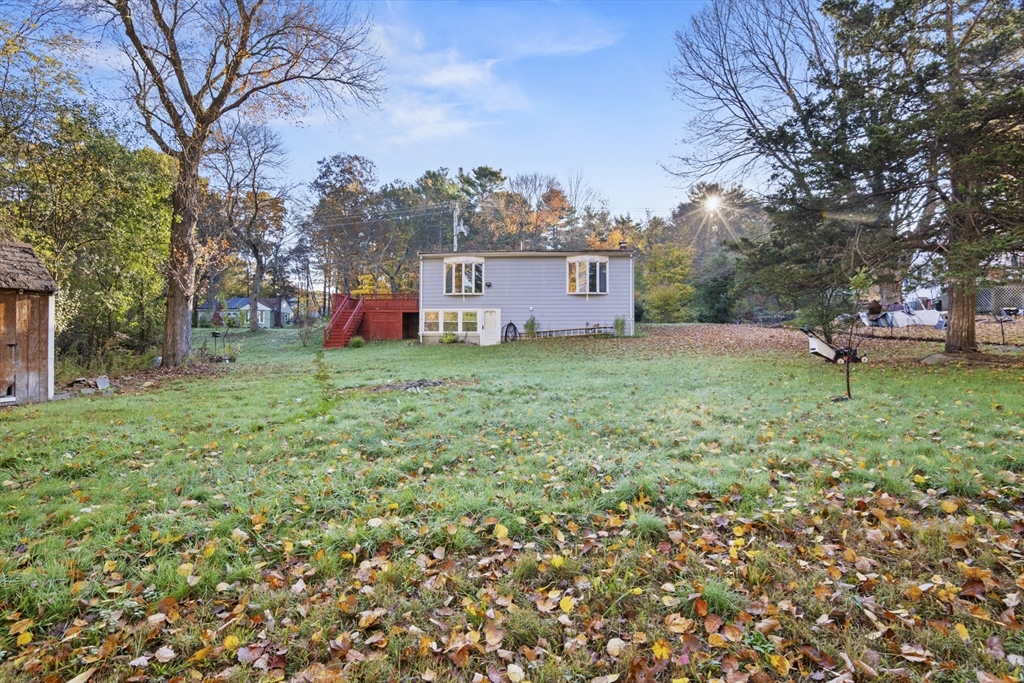 Welcome home to this beautiful, move-in-ready 4-bedroom, 2-bathroom Ranch offering single-level living at its finest. Enter inside to hardwood floors throughout. The sunny living room features a cozy fireplace, perfect for New England evenings. The kitchen is a chef's delight with granite countertops, stainless steel appliances, brand new high-end range fan over stove top and upgraded cabinets, flowing into a formal dining room with charming beamed ceilings. The spacious primary suite is a true retreat, boasting two closets and a private en-suite with a shower stall. Three additional bedrooms and a full bathroom complete the main level. Downstairs offers more flexible living space with a finished family room and a dedicated laundry area. Enjoy the outdoors on the back deck, with two handy storage sheds for your convenience. Complete with Central AC, this home is in a fantastic location with easy access to restaurants, shops, and major routes. Your new home is waiting!