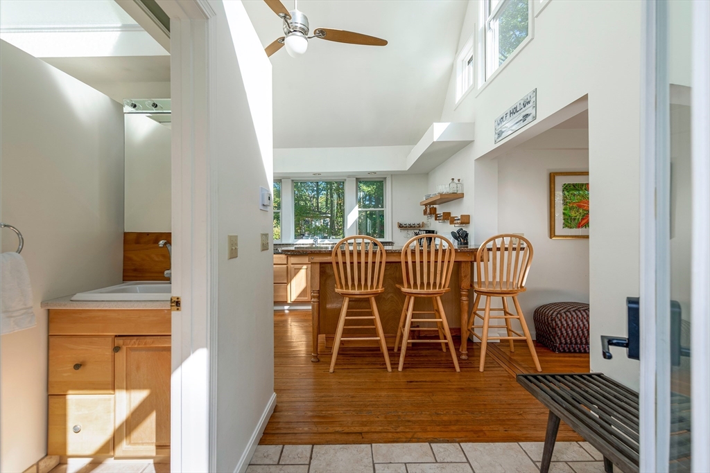 Located on a recently designated dead-end road with picturesque marsh views, this charming colonial home at 8 Old Essex Road offers a delightful blend of comfort and versatility. With 4 bedrooms, including a legal two-family setup, the home features a one-bedroom apartment on the first floor with its own entrance and deck, ideal for guests or rental income. The main house boasts three bedrooms, complemented by two private home offices on the third floor, perfect for work-from-home needs. An updated kitchen and bath provide modern conveniences, while wood floors and skylights enhance the home's warmth and natural light. Outdoor enthusiasts will appreciate the expansive decks overlooking the tranquil marsh, a large two-car garage/workshop with glass doors and tall windows, and a unique treehouse that's fun for all ages. Close proximity to Crane Beach and restaurants, this home offers a perfect retreat in a stunning location.