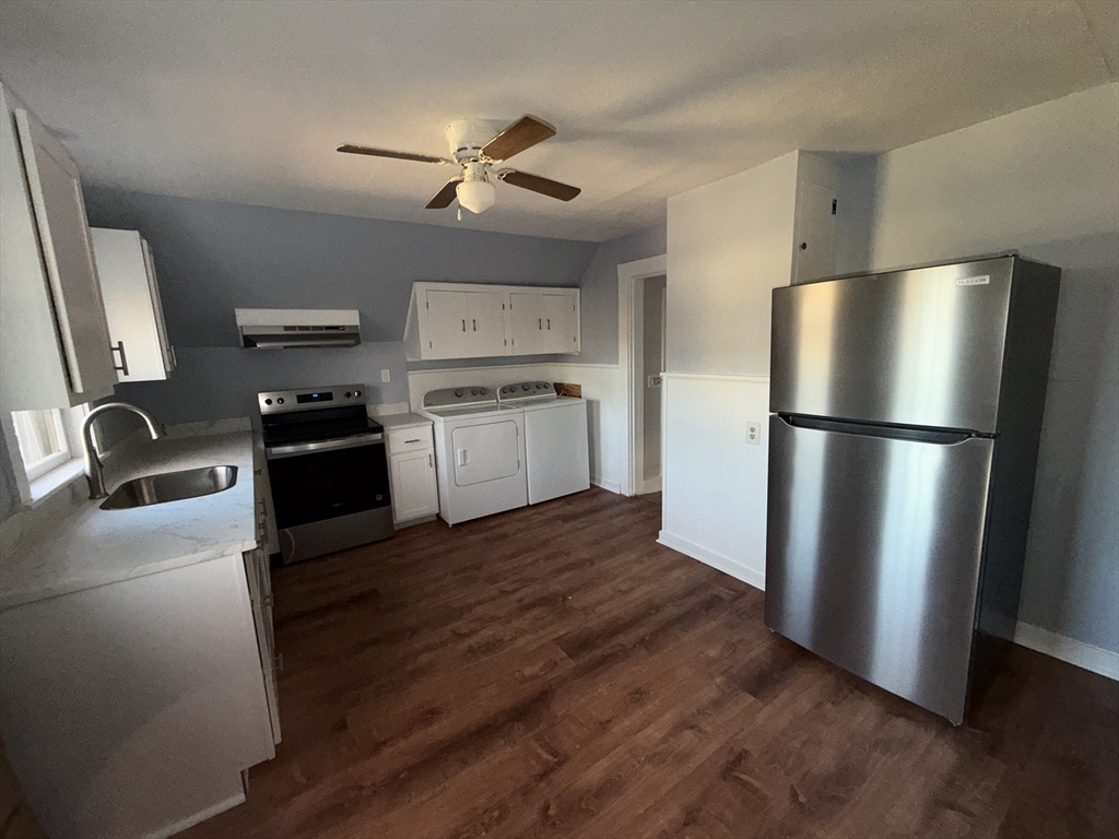 New kitchen updated lighting and fresh flooring throughout. New appliances and in unit laundry. Off street 2 deeded parking spaces. A five-minute drive to the commuter rail station. All amenities close by and short walk to downtown. Available 1st of the year.