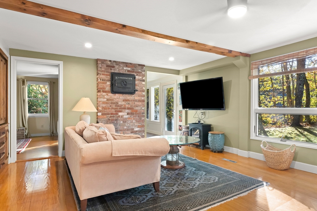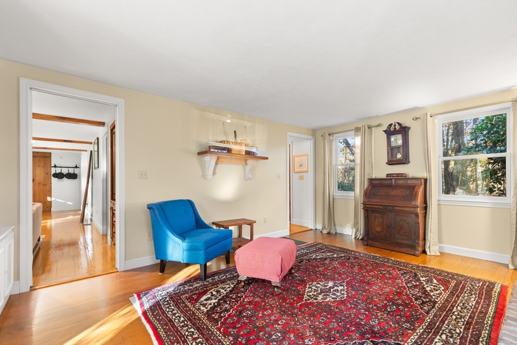 Desirably priced 3-bedroom, 3.5-bath OVER 2300 sq ft. home nestled on approx. 2 private acres! The open-concept kitchen & family room serve as the heart of the home, offering wonderful views of the peaceful backyard & expansion potential. Upstairs features two large front-to-back ensuite bedrooms, one w/ a newer bathroom & one featuring a charming & cozy window seat. An additional spacious bonus room w/ full bath sits over the garage—ideal for guests, office, or media space. Enjoy a lovely living room w/ fireplace & a sunroom with brick flooring. A 1st fl bedroom w/ closet, a half bath & full mudroom w/ laundry, as you enter, complete the 1st floor. Full basement and 2-car garage provide ample storage and functionality. Conveniently located near highways, minutes to Newburyport and beaches, and just 45 minutes to Boston. A great opportunity for value, privacy, and lifestyle! BRAND NEW SEPTIC TO BE INSTALLED. Hurry this Is well priced. FIRST SHOWINGS AT SUNDAY OPEN HOUSE 12 TO 1:30.
