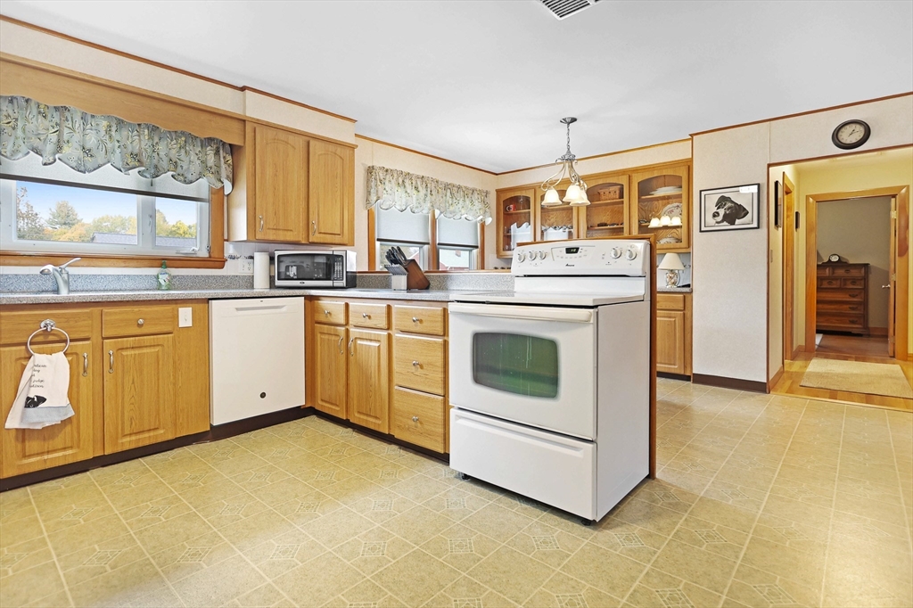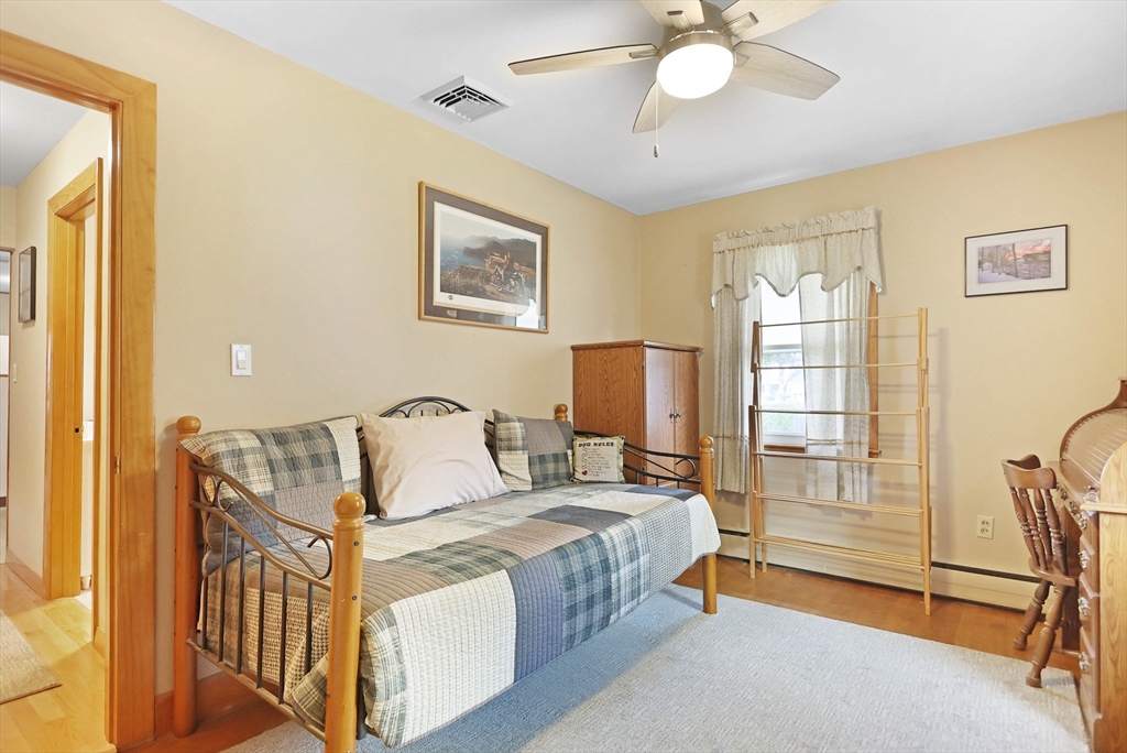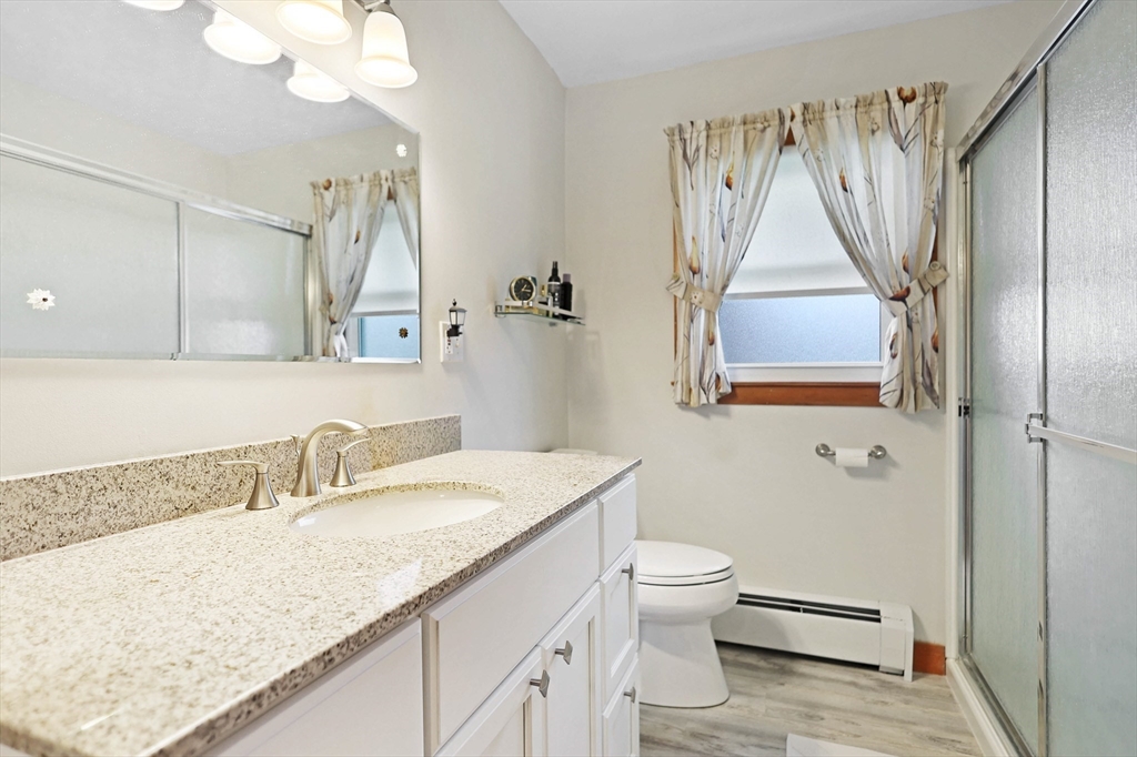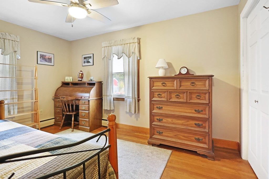 Located in the highly desirable area of Bradford, this beautifully maintained ranch offers a warm and inviting atmosphere. The open floor plan features gleaming hardwood floors throughout, creating a seamless flow from room to room. Perfect for making lasting memories, the spacious living room and cozy den provide ample space to relax and entertain. The finished lower level is ideal as a playroom or home gym. Recent updates include a new central air system, a remodeled full bath, an epoxy garage floor, a young roof, and a newer furnace, half bath, and generator—so move-in ready. The oversized deck overlooks a pristine, fenced yard, creating a perfect oasis for family fun, outdoor entertaining, and pets. This wonderful home combines comfort, charm, and practicality in a friendly neighborhood — a place where you can truly settle in and make it your own.