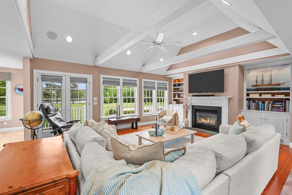 Welcome to a quintessential Cape Cod estate at 350 Plum Street, West Barnstable, where antique charm meets modern sophistication. This waterfront property spans over 4 acres, offering panoramic vistas and includes a buildable additional lot, enhancing its allure and potential. Inside, discover three exquisitely designed bedrooms, including two primary suites with spacious layouts, opulent en-suites, and expansive walk-in closets. The estate features a historic barn and an antique one-bedroom cottage, ideal for guests or rental income. Living spaces offer relaxation and entertainment, highlighted by two fireplaces—one gas and one wood-burning—providing warmth and charm. A partially finished walk-out basement offers customization potential. The sprawling backyard is perfect for celebrations, complemented by a private sandy beach for tranquil moments. Additional amenities include a generator and an oversized two-car garage for convenience and security. Experience a luxurious Cape Cod life