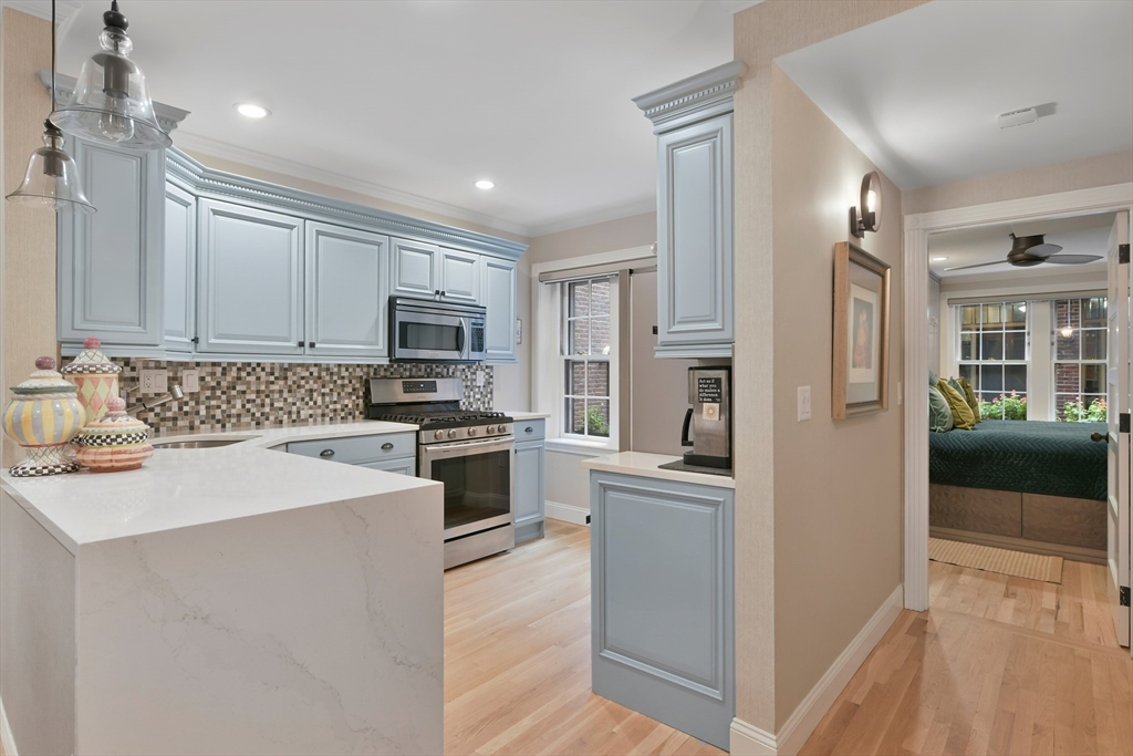 Nestled in the heart of Beacon Hill, this thoughtfully updated 1-bedroom plus office, 1-bath home blends timeless charm with modern sophistication. This home is an entertainer’s dream with an open floor plan, updated kitchen, a wood burning fireplace, beautiful hardwood floors, and designer lighting. This is complemented with convenient features such as in unit laundry, California closets and custom blinds throughout. A dedicated office adds versatility, while a private entrance on Champney Place enhances convenience and privacy. Enjoy a common roof deck with sweeping city and water views plus a private basement storage unit. Ideally located near Charles Street, Boston Common, public transit, and more, this impeccably designed Beacon Hill residence offers elegant living in one of Boston’s most sought-after neighborhoods.