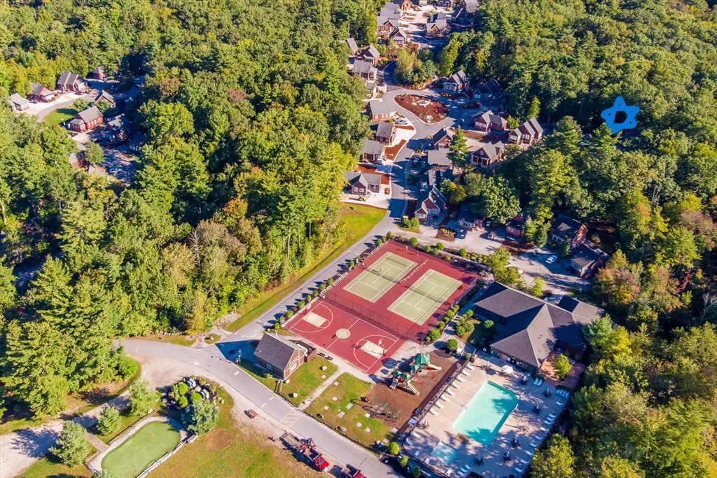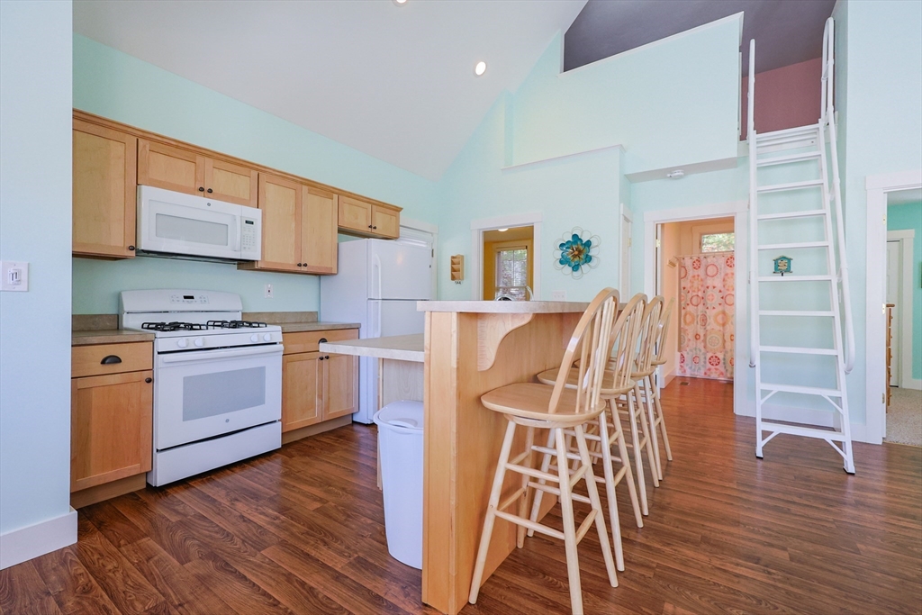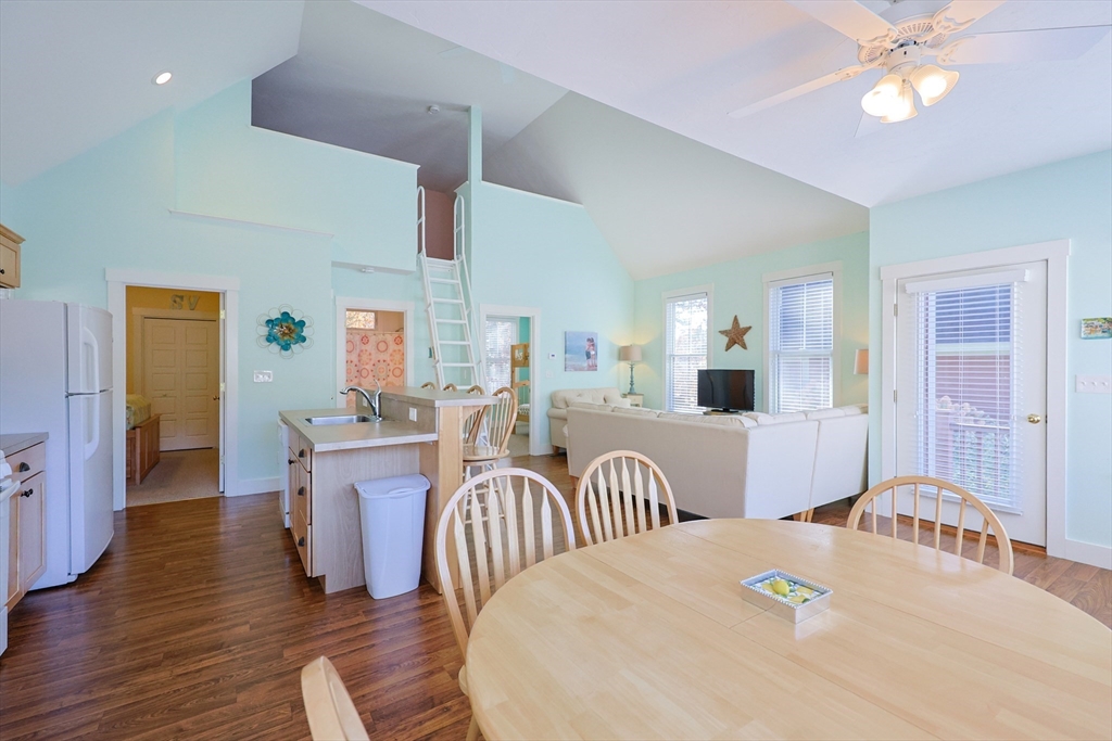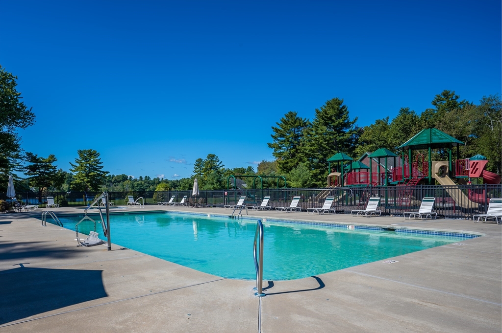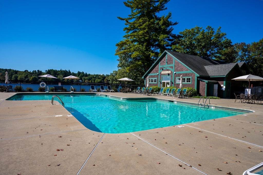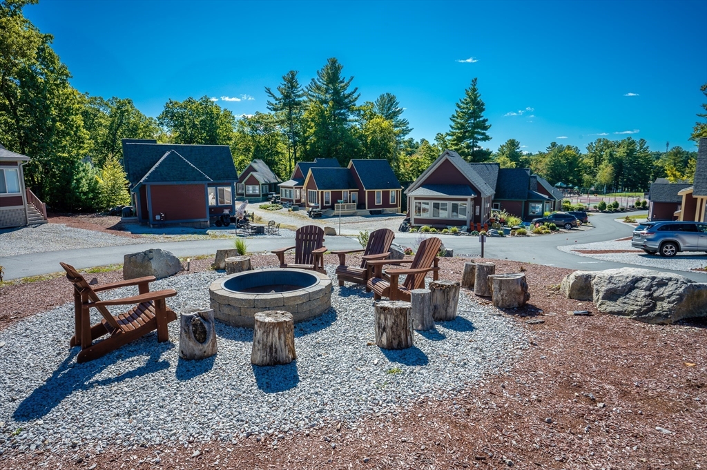 Welcome to your 'Perfect Summer Home'! Formally Wyman's Beach, this property has been transformed into Summer Village Westford; a gated seasonal condo community of single family cottages nestled around Long Sought For Pond. Popular Sycamore style cottage in a PRIME location! Large open concept living with designated living/dining spaces. Beautiful kitchen with extended island, recessed lighting, pantry, gas cooking & ceiling fans. In unit laundry. Central Heat/AC. Easy care vinyl flooring, spacious storage loft & highly coveted 1/2 bath in the primary bedroom. Enjoy the expansive private outdoor space at the end of this centrally located cul-de-sac& beautiful wooded surroundings. Conveys fully furnished & includes a Golf Cart! Purchase now and be ready to enjoy summers like they used to be on opening day! Amenities include: Private beach, kayaks, canoes, heated pools, tennis, pickleball, basketball, private restaurant/ bar, general store, hiking, fishing, library & activities for all.
