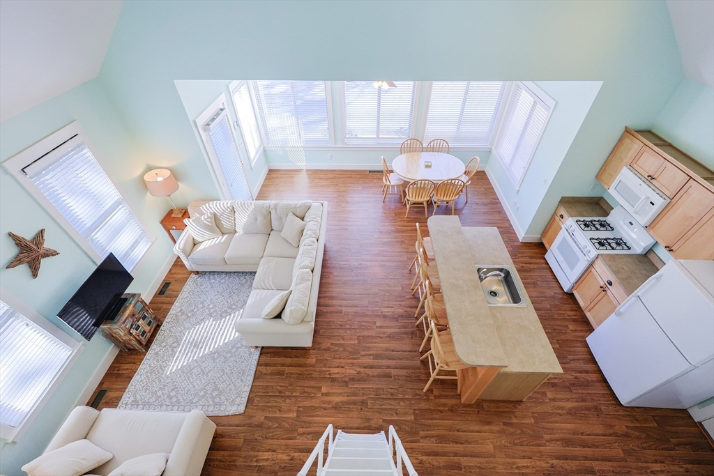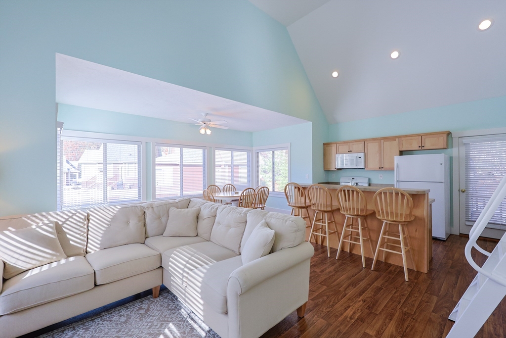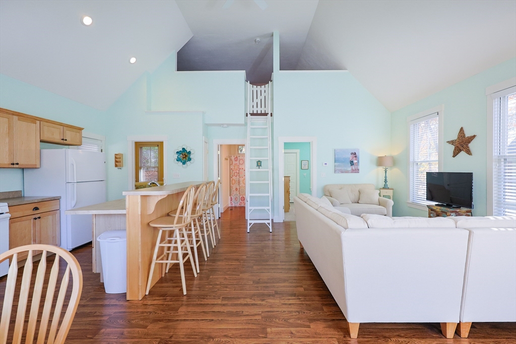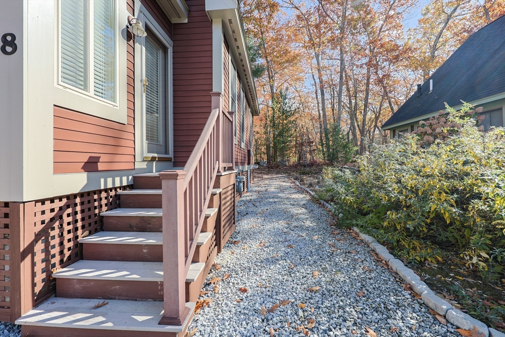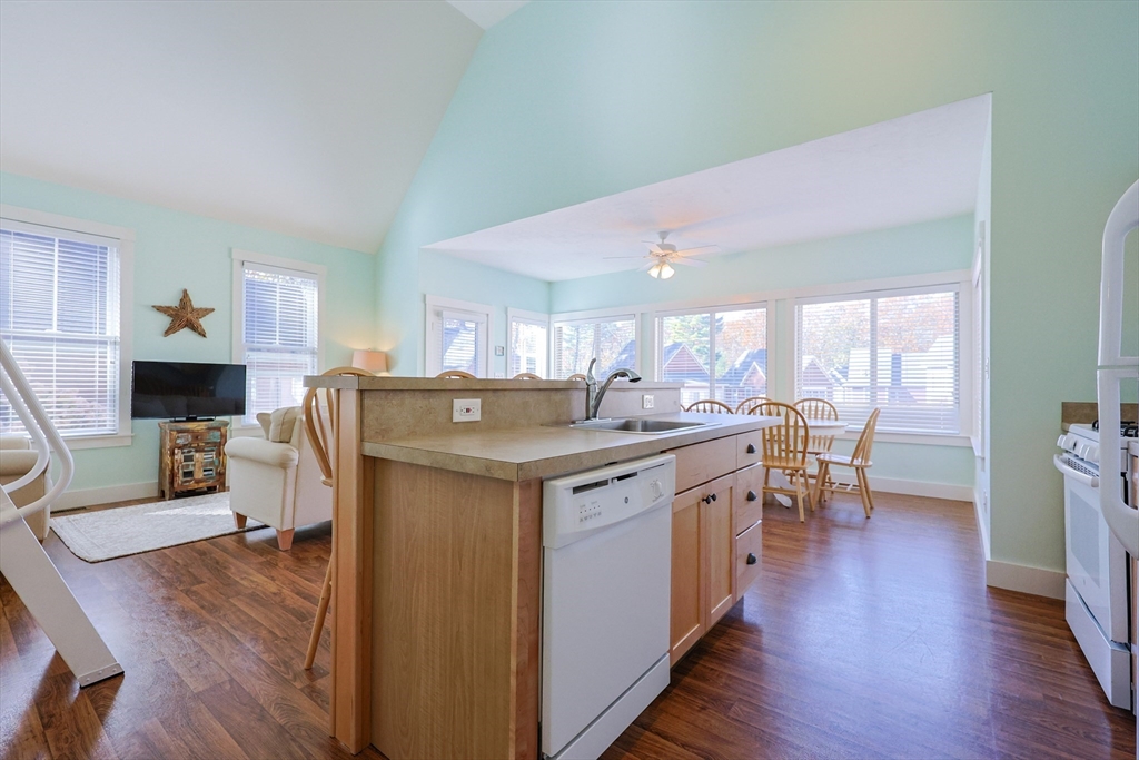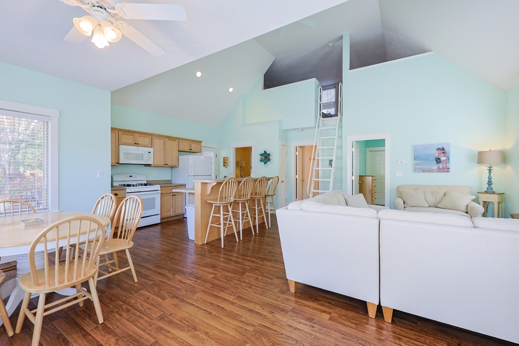 Welcome to your 'Perfect Summer Home'! Formally Wyman's Beach, this property has been transformed into Summer Village Westford; a gated seasonal condo community of single family cottages nestled around Long Sought For Pond. Popular Sycamore style cottage in a PRIME location! Large open concept living with designated living/dining spaces. Beautiful kitchen with extended island, recessed lighting, pantry, gas cooking & ceiling fans. In unit laundry. Central Heat/AC. Easy care vinyl flooring, spacious storage loft & highly coveted 1/2 bath in the primary bedroom. Enjoy the expansive private outdoor space at the end of this centrally located cul-de-sac& beautiful wooded surroundings. Conveys fully furnished & includes a Golf Cart! Purchase now and be ready to enjoy summers like they used to be on opening day! Amenities include: Private beach, kayaks, canoes, heated pools, tennis, pickleball, basketball, private restaurant/ bar, general store, hiking, fishing, library & activities for all.