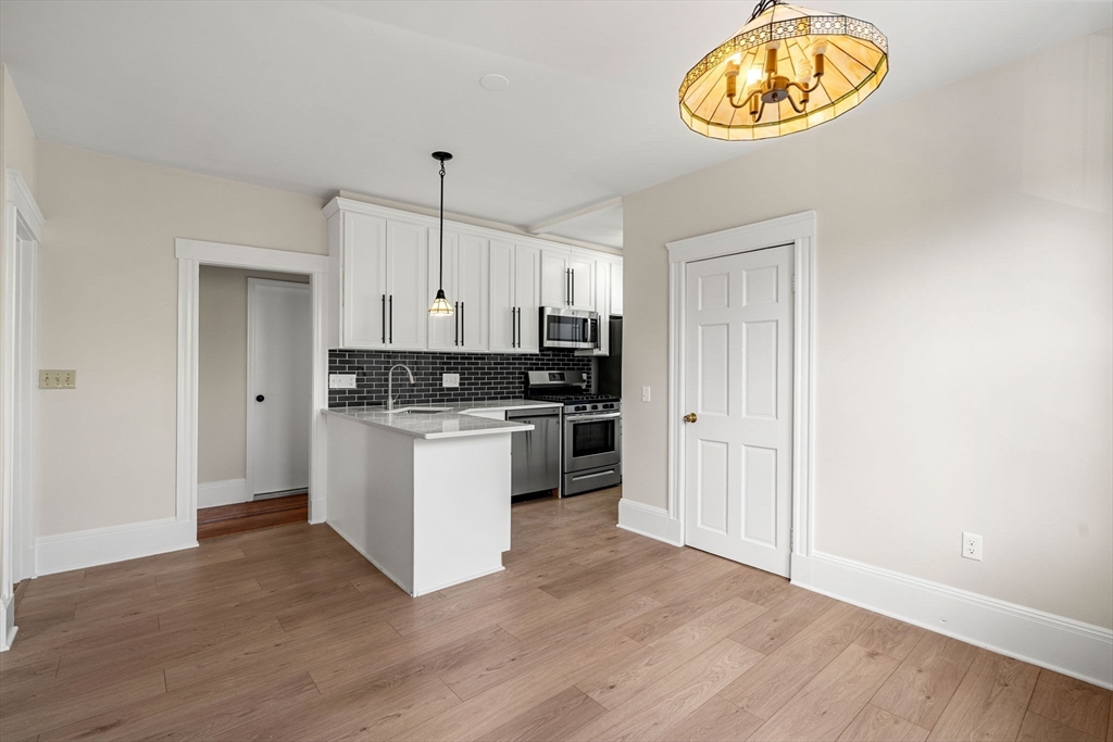 This charming top-floor condo in the St Elizabeth's area of Brighton Center is on the market for the first time in almost 20 years. Renovated in 2023 to blend modern amenities with original character, this bright and spacious unit boasts 3 bedrooms and 2.5 bathrooms. The flexible floor plan allows for a home office or fourth bedroom with ample natural light coming in through the wall of windows. Step into the kitchen featuring stainless steel appliances, quartz countertops, ample cabinetry and easy entertaining with the open concept flow into the dining room. Enjoy your own private porch in the back and two off-street parking spaces that can hold 3 cars in tandem for added everyday convenience. The laundry room, additional private space for storage, and a half bath can be found in the basement. The pet-friendly policy, proximity to commuting, schools, hospitals and general city access provide a space to call home for a wide range of lifestyles.