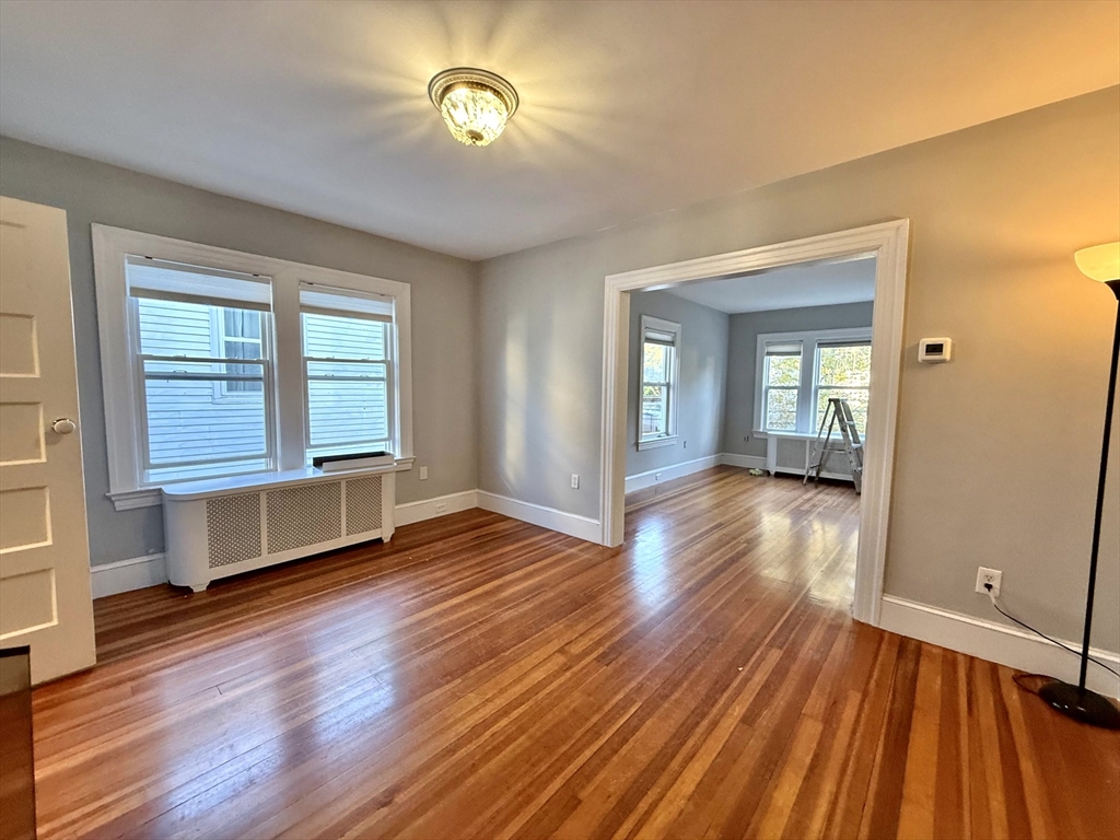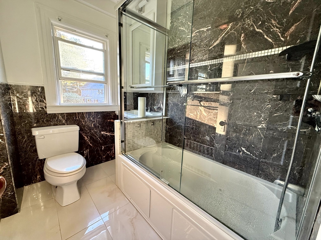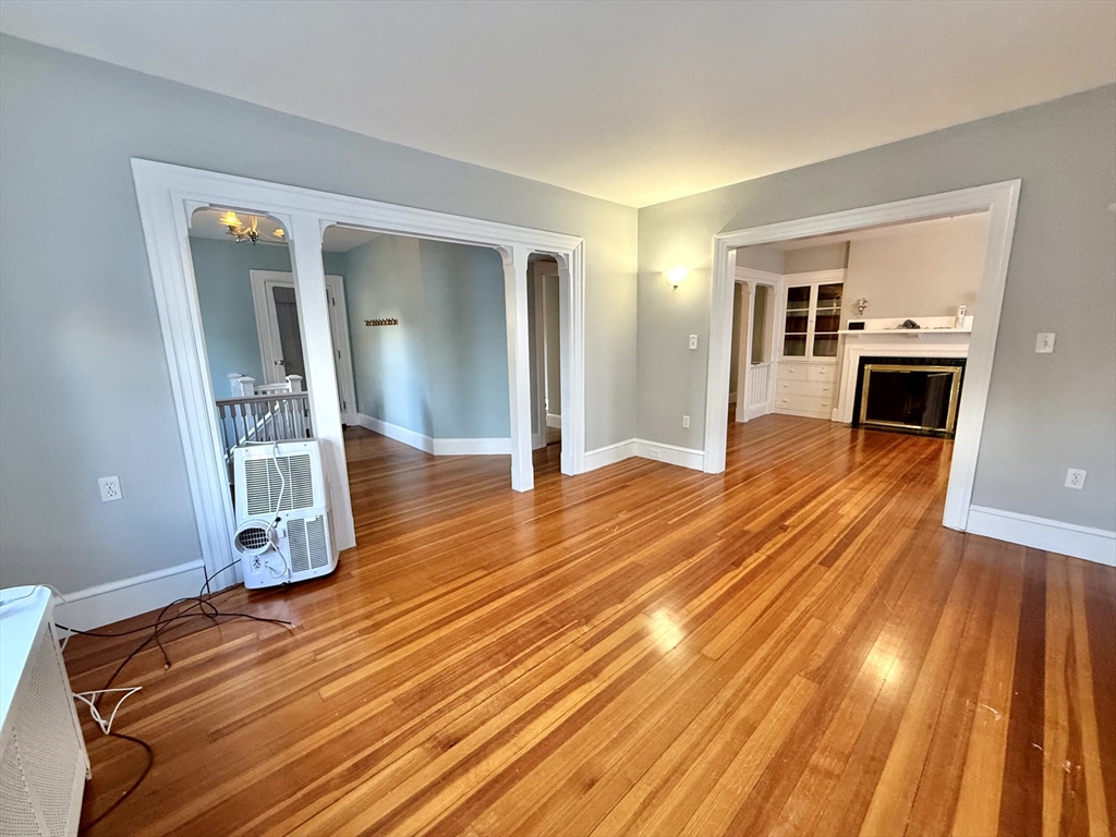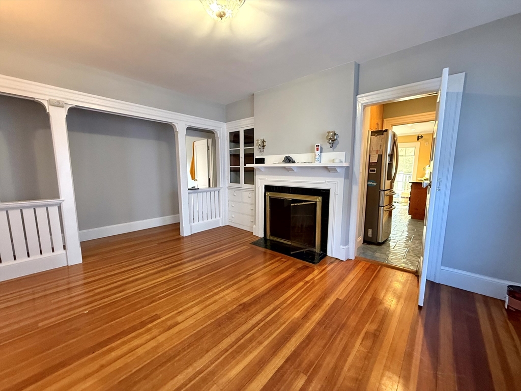 Now Available! Bright and spacious 4-bed, 2-bath apartment on the 2nd and 3rd floors of a well-kept Watertown duplex. Features include hardwood floors, custom built-ins, and generous storage throughout. The main level offers a large foyer, living and dining rooms with fireplace, and a modern eat-in kitchen with granite counters, breakfast bar, and quality appliances. Three bedrooms and a full bath complete this floor, including a primary with built-ins and walk-in closet. Upstairs you'll find a fourth bedroom, second full bath, and open bonus space. Enjoy wraparound porches, gardens, patio, and a fenced yard. Includes 1 garage plus 2 driveway spaces. Great location near Watertown Sq and Newton Corner. Pets negotiable. First and security required.