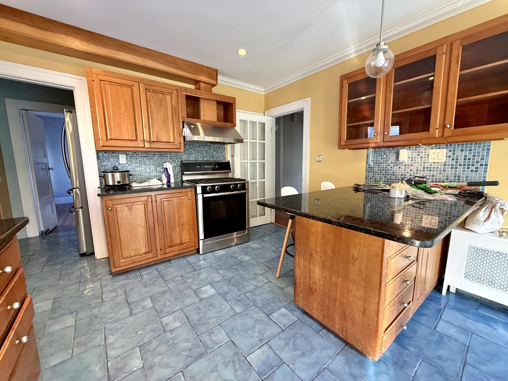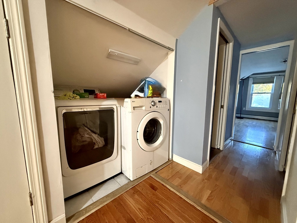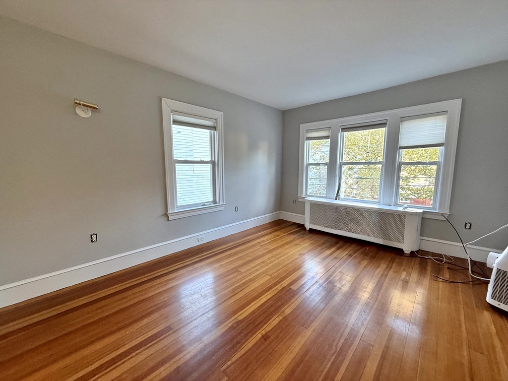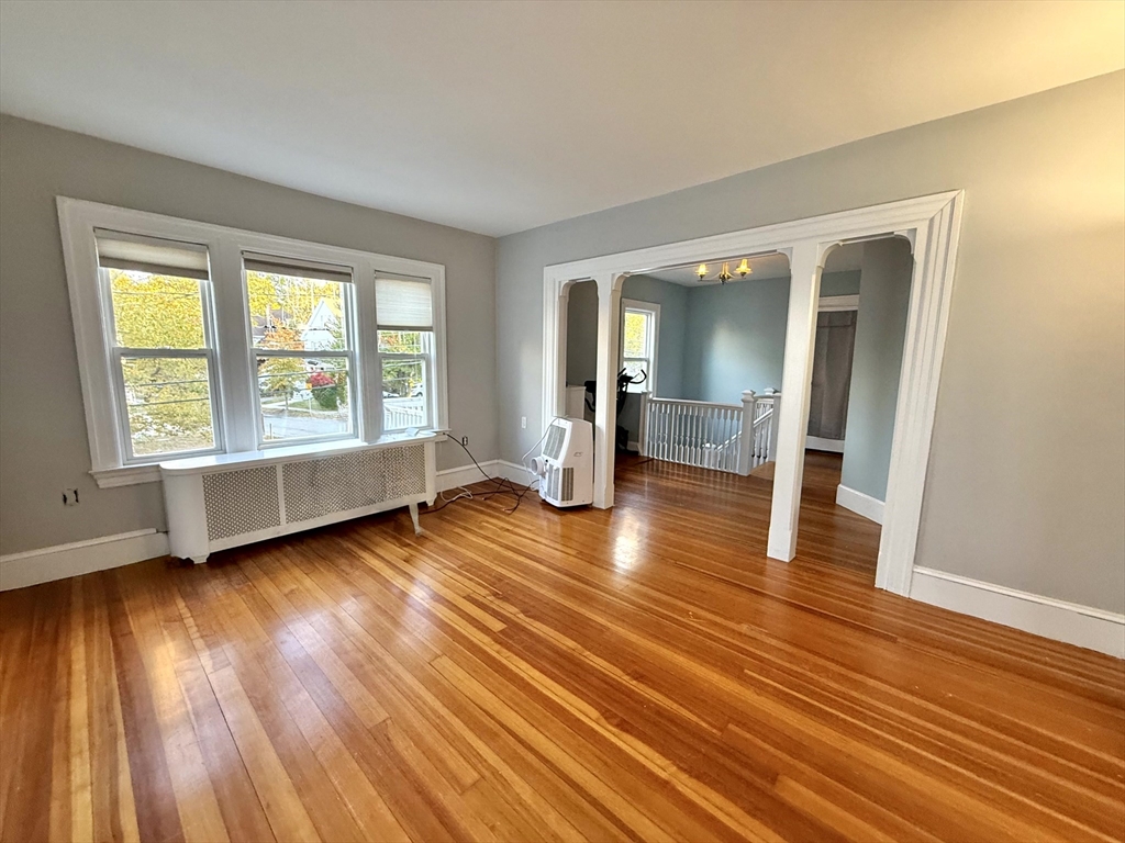 Now Available! Bright and spacious 4-bed, 2-bath apartment on the 2nd and 3rd floors of a well-kept Watertown duplex. Features include hardwood floors, custom built-ins, and generous storage throughout. The main level offers a large foyer, living and dining rooms with fireplace, and a modern eat-in kitchen with granite counters, breakfast bar, and quality appliances. Three bedrooms and a full bath complete this floor, including a primary with built-ins and walk-in closet. Upstairs you'll find a fourth bedroom, second full bath, and open bonus space. Enjoy wraparound porches, gardens, patio, and a fenced yard. Includes 1 garage plus 2 driveway spaces. Great location near Watertown Sq and Newton Corner. Pets negotiable. First and security required.
