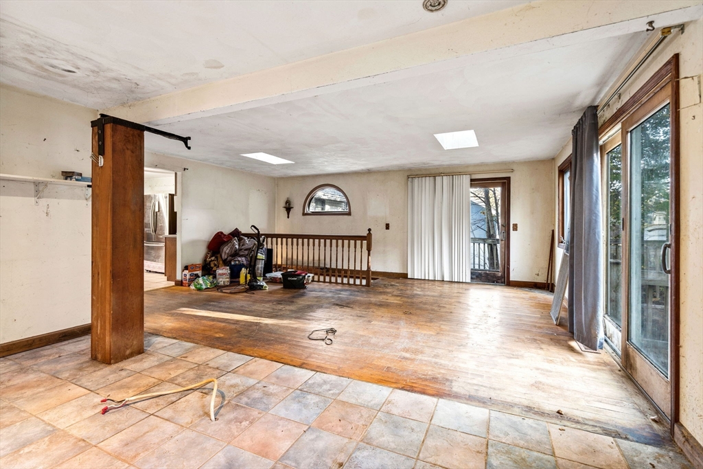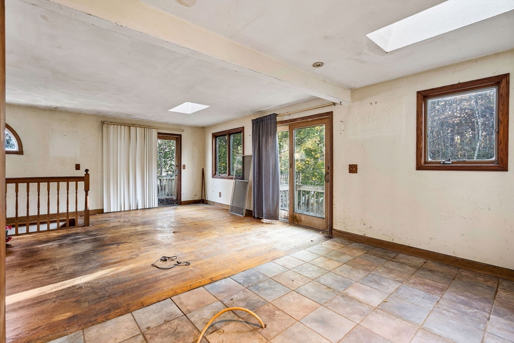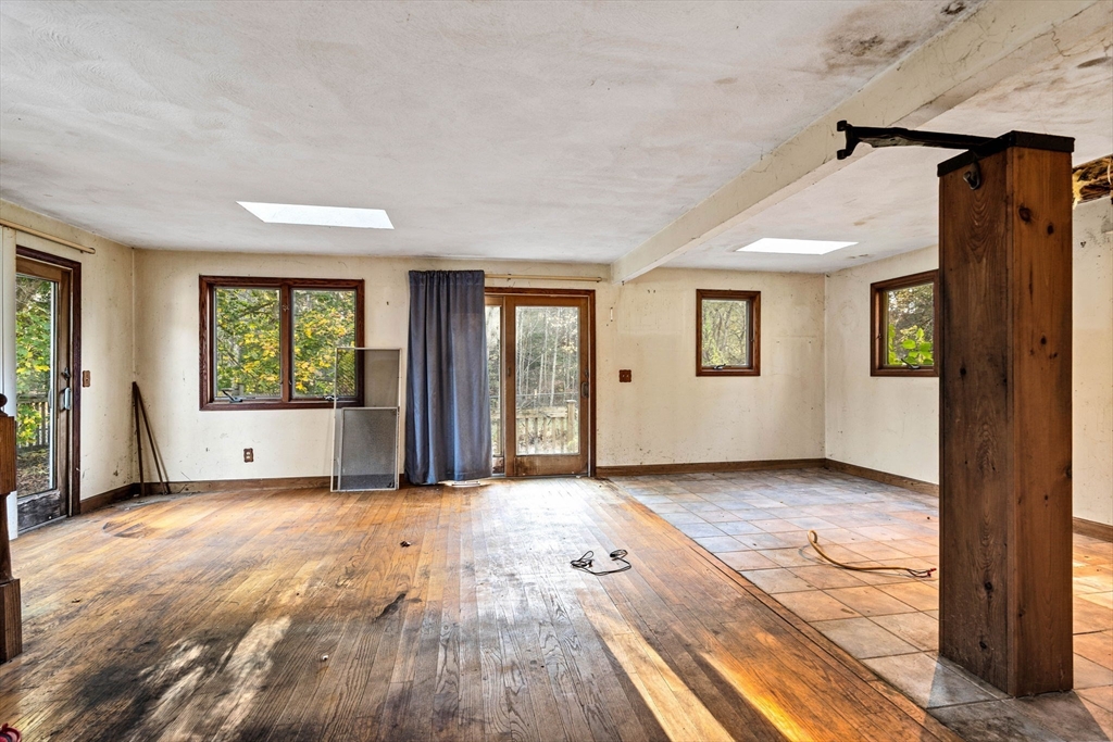 Builders & contractors—opportunity awaits! Set on nearly an acre in the desirable town of Groveland, this oversized 3-bedroom ranch offers outstanding potential for renovation or rebuild. Featuring 1,526 sqft, plus a full unfinished basement, hardwood floors throughout (under the carpets as well), natural gas heat, and vinyl siding, this property is ready for new life. Vacant for several years, the home will require a full rehabilitation—but for those prepared to take on the project, it presents a rare chance to create a remarkable residence or investment. Reimagine the existing 3-bed, 1-bath layout into a modern 3-bed, 2-bath home with a potential primary suite and detached 2-car garage with apartment. Conveniently located near schools, parks, and commuter routes. Being sold strictly AS-IS. Buyer responsible for Title V and all due diligence.