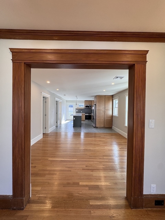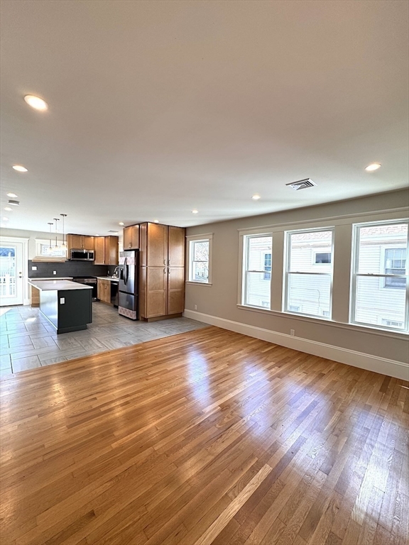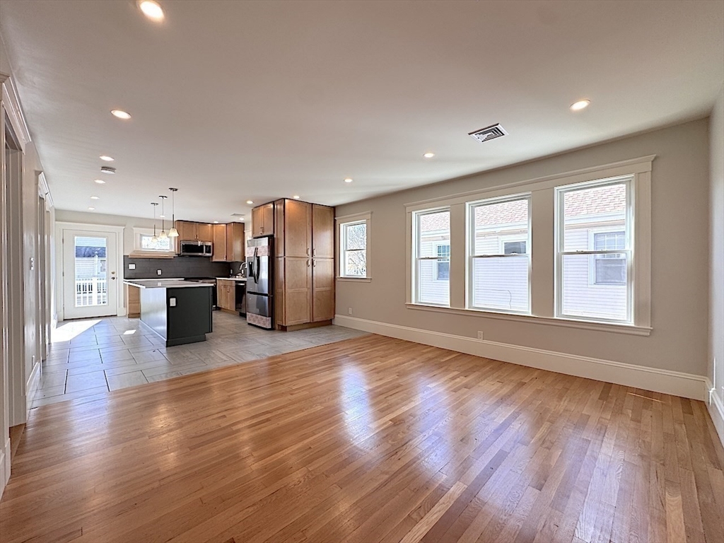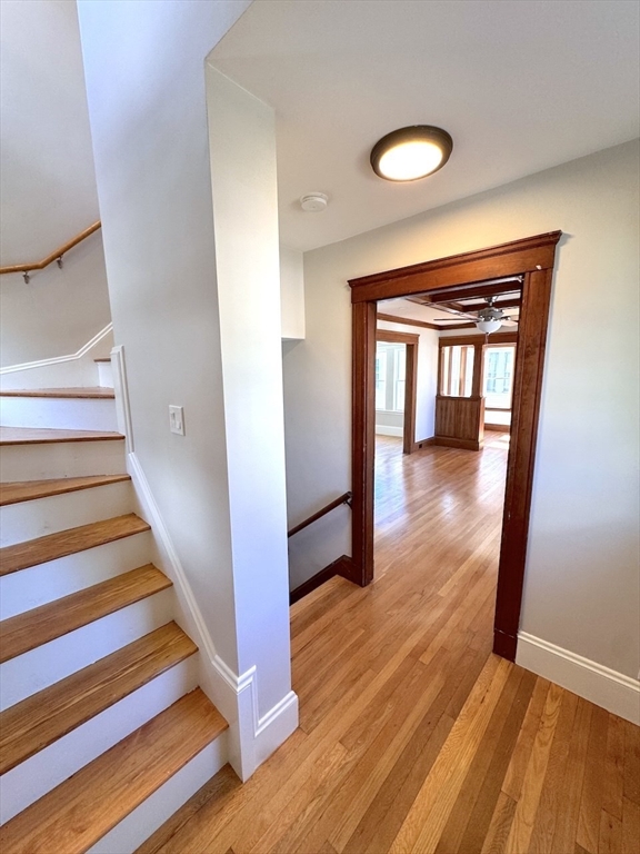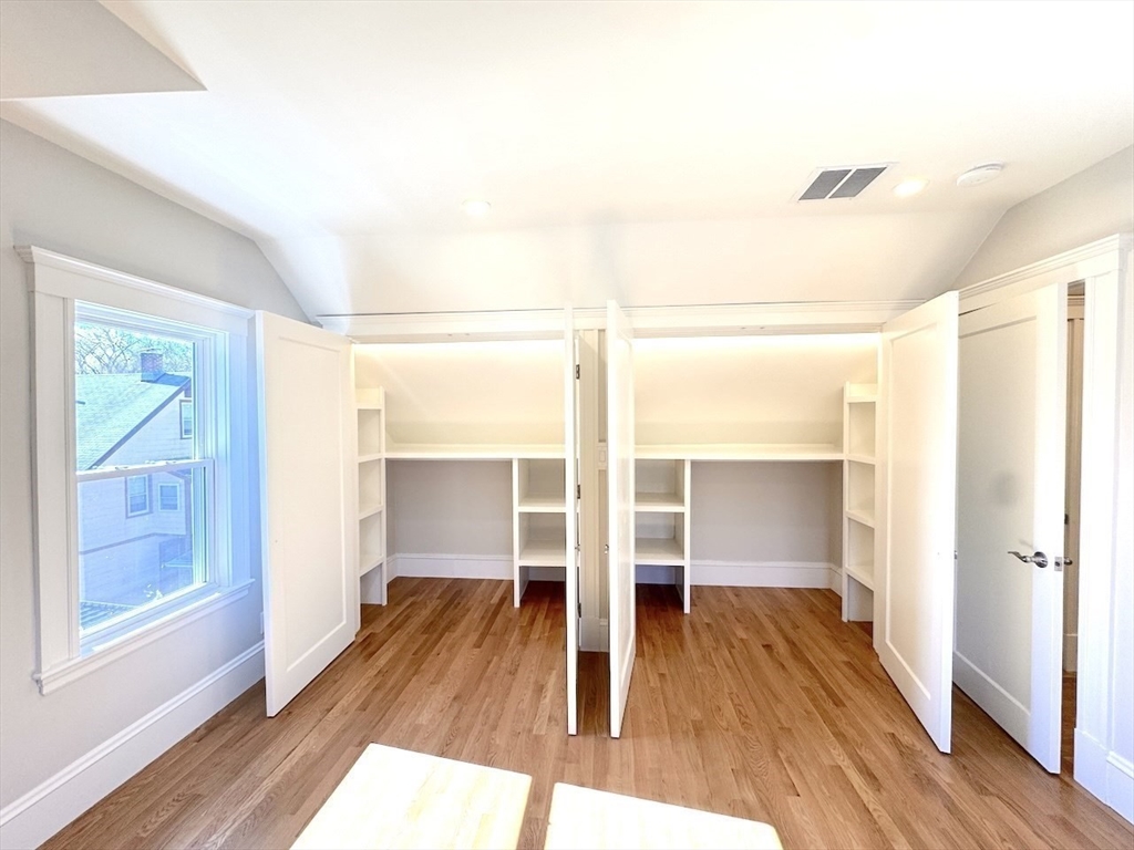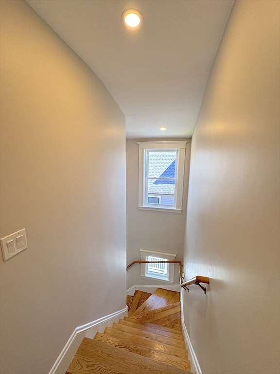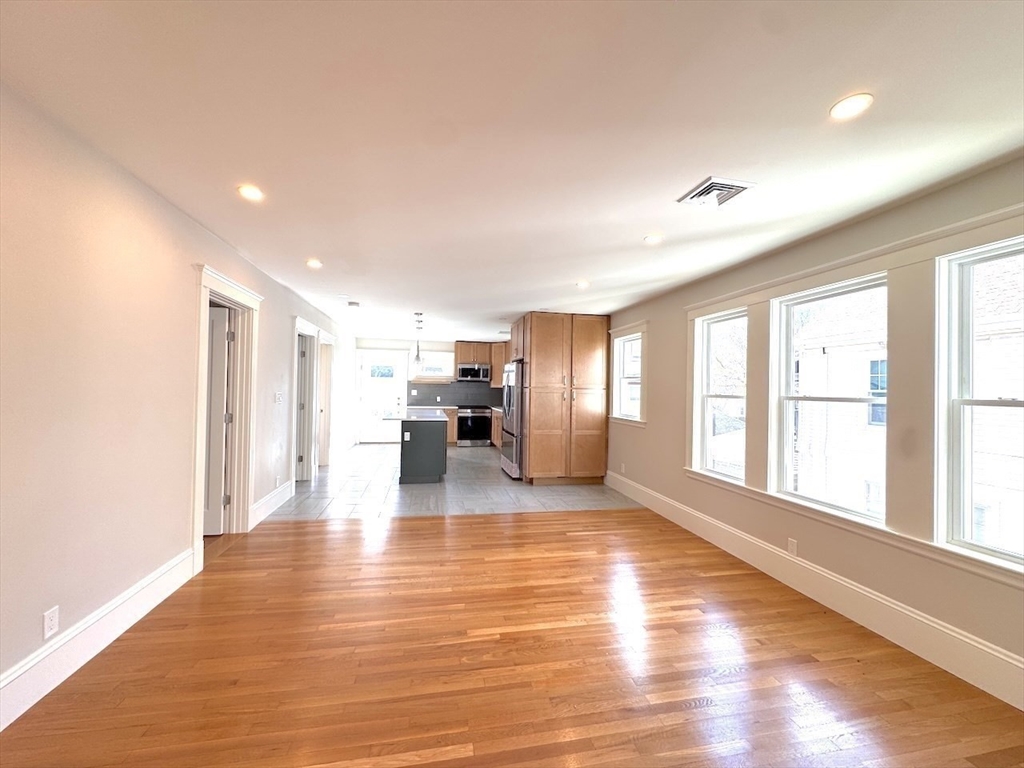 Beautifully renovated 5-bed, 3-bath duplex in desirable East Arlington. Spanning two upper levels of a two-family home. This unit offers generous space, natural light, and thoughtful design throughout. Features include a modern induction kitchen with stainless steel appliances, a private primary suite with ensuite bathroom, in-unit laundry, heated bath floors, a private deck, parking for two cars, an efficient heat pump, and refinished oak floors. Near Hardy School, Alewife, Minuteman Trail & Capitol Sq. Available Nov 1.