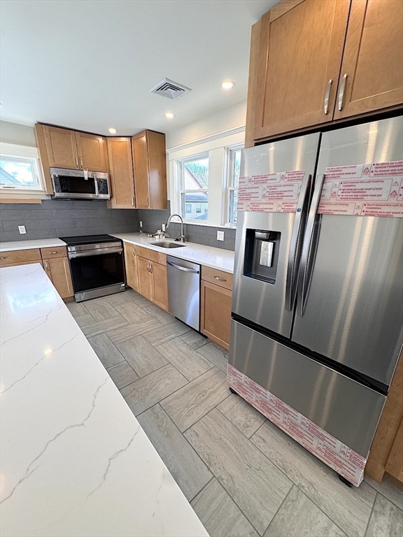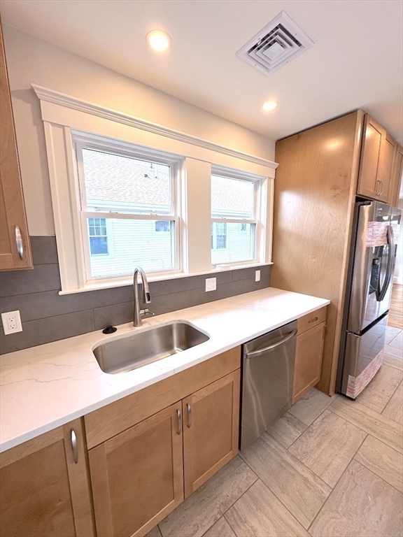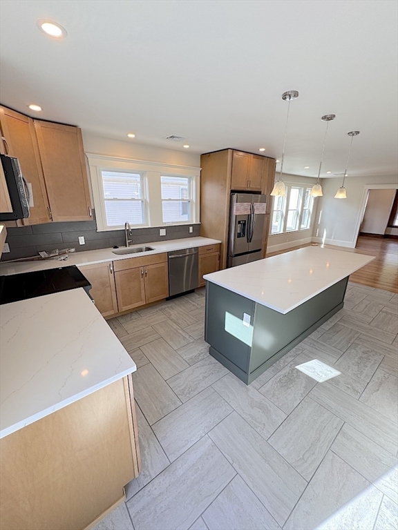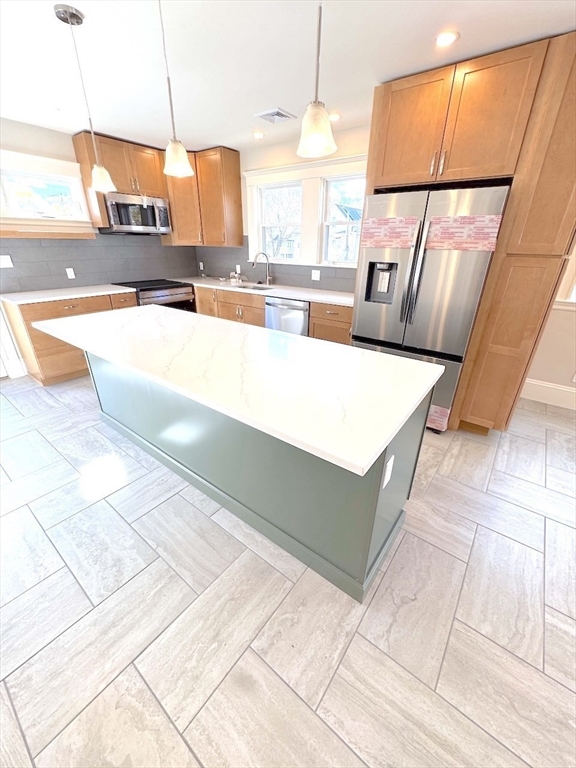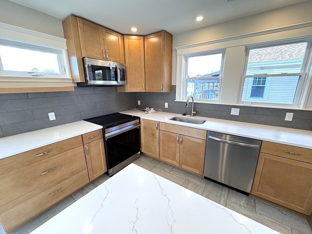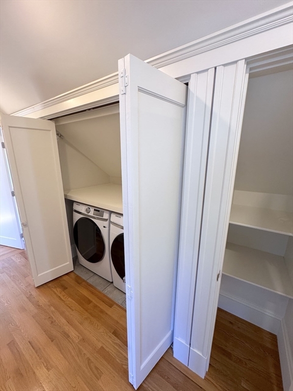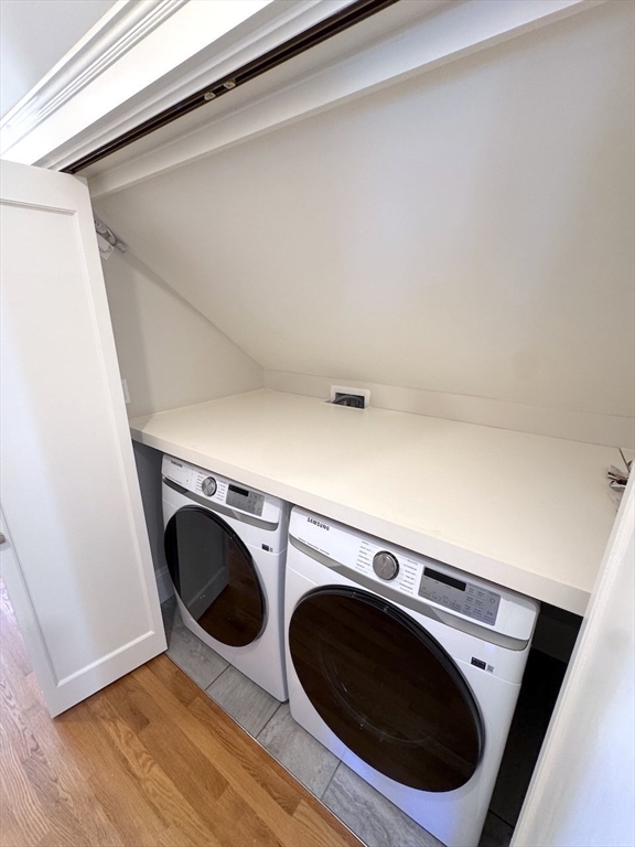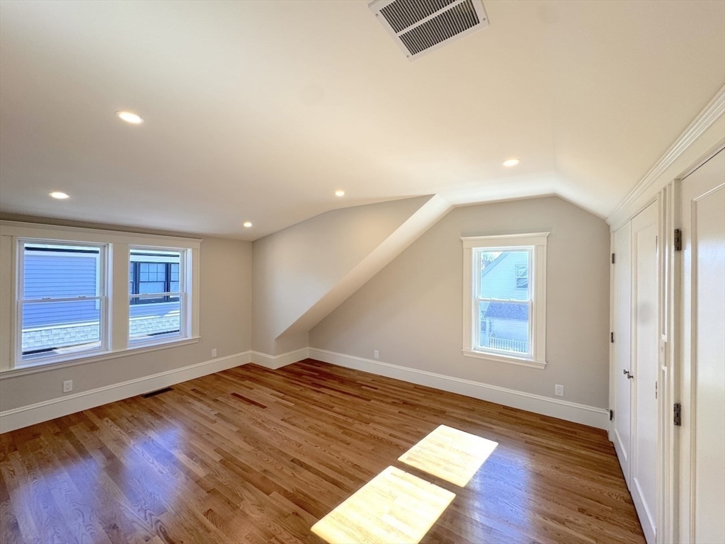 Beautifully renovated 5-bed, 3-bath duplex in desirable East Arlington. Spanning two upper levels of a two-family home. This unit offers generous space, natural light, and thoughtful design throughout. Features include a modern induction kitchen with stainless steel appliances, a private primary suite with ensuite bathroom, in-unit laundry, heated bath floors, a private deck, parking for two cars, an efficient heat pump, and refinished oak floors. Near Hardy School, Alewife, Minuteman Trail & Capitol Sq. Available Nov 1.