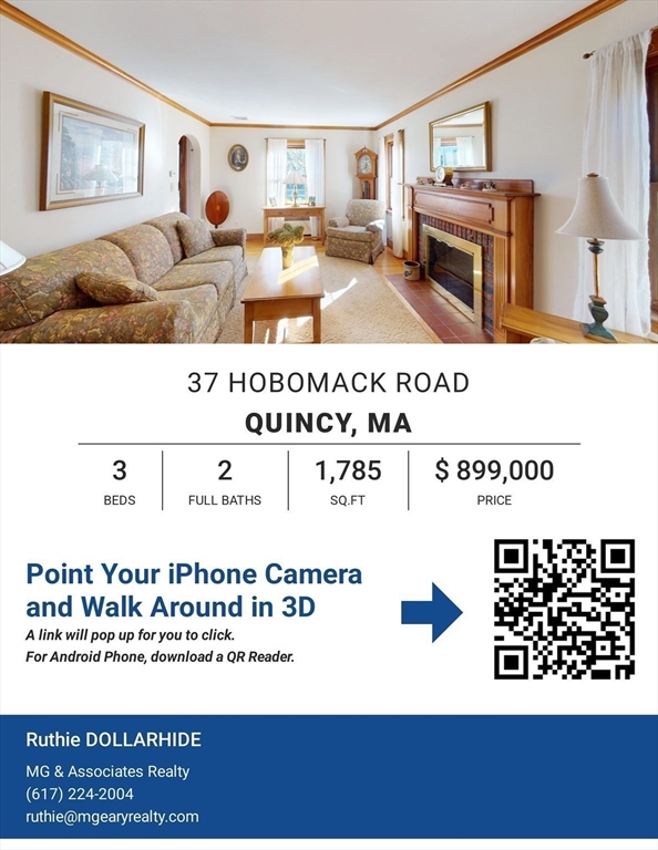 37 Hobomack Road blends New England charm and coastal living with modern convenience. Nestled in the highly desirable Merrymount neighborhood, this meticulously maintained expanded cape is perfect for all the family. Over 2000 s.f. of living space that includes a finished basement. The bright and spacious family room and kitchen open directly to a lovely private deck overlooking a fenced backyard, ideal for entertaining or relaxing outdoors. This home includes 3 bedrooms and 2 full baths, with hardwood floors throughout. Newer, high efficiency multi-zone gas heat with updated central A/C provide year-round comfort. One block from the neighborhood elementary school, park and playground, with Quincy Bay at the end of the street. Merrymount residents enjoy a neighborhood association that hosts social gatherings for all ages, centered on its private beach. ******OFFER DEADLINE TUES. NOV. 11th at 2PM ******
