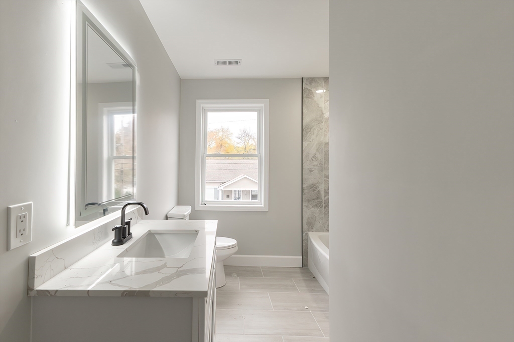 NEW NEW NEW! This gorgeous ATTACHED HALF Duplex has been completely Renovated to the Studs bringing the style and comfort up to today’s modern standards. You have your own private driveway, entrance, and even garage so it feels like a single-family home. Worry free new roof, vinyl siding, windows, all new electrical, plumbing, high efficiency gas heat and central air, new water heater and gorgeous hardwood floors throughout. Enjoy your brand new kitchen with high end quartz countertops, new stainless-steel appliances and modern fixtures with an open concept layout. 3 beds and a full bathroom tiled to perfection on the second floor while additional half bath on the 1st floor for convenience. Don’t forget the many possibilities in the basement and large backyard so bring your offers quick! This opportunity will not last long.