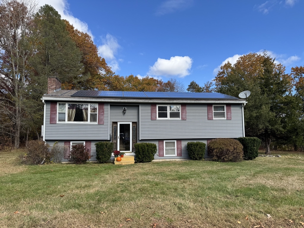 Incredible Opportunity to own a 3-bedroom raised ranch, set on a spacious, private lot in a convenient Millbury location. This home offers versatile space and exceptional potential for buyers ready to add their own updates and style. Relax or entertain on the back deck overlooking the picturesque yard, or in the cozy lower level featuring a full bar room and wood-burning stove. Recent updates include neutral carpeting installed on first floor and new basement flooring. In 2016 high-efficiency solar panels were installed for energy savings. Conveniently located near Routes 146, 20, the Mass Pike--close to shopping and dining. This property presents great possibilities to move-in, build equity while making it your own. First showings Sunday November 2nd 12-2.