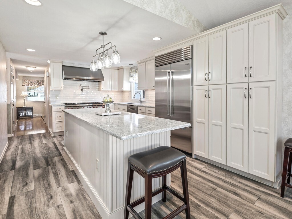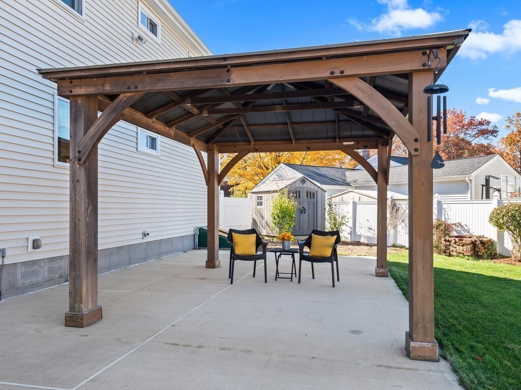 Stunning Gambrel Colonial on the Wilbraham line in Sixteen Acres! Double paved drive leads to an immaculate, partially fenced outdoor space, perfect for summer parties w/covered composite deck, concrete patio, gazebo, sprinkler system, storage shed & huge shed/workshop w/separate 220 amp panel & alarm system. Remodeled (2018) chefs kitchen w/Sub Zero refrigerator, 6 burner Wolf gas range, pot filler, Braun hood, Bosch dishwasher, touch faucet, tiled floor & tiled backsplash, HUGE center island w/built-in micro drawer & awesome vaulted ceiling dining area. Spacious front to back family room, dining rm w/oak floors & full bath w/tiled floor. Main bedroom w/recessed lighting, dbl closet, ceiling fan & built-in TV. Full bath & 2 good sized bedrooms with dbl closets, ceiling fans & brand new carpeting complete the 2nd floor. Lower level incls a finished 15x22 bonus room, partially fin office & spacious utility rm/workshop w/set sink & laundry hookup. Near the Veterans Memorial Golf Course!