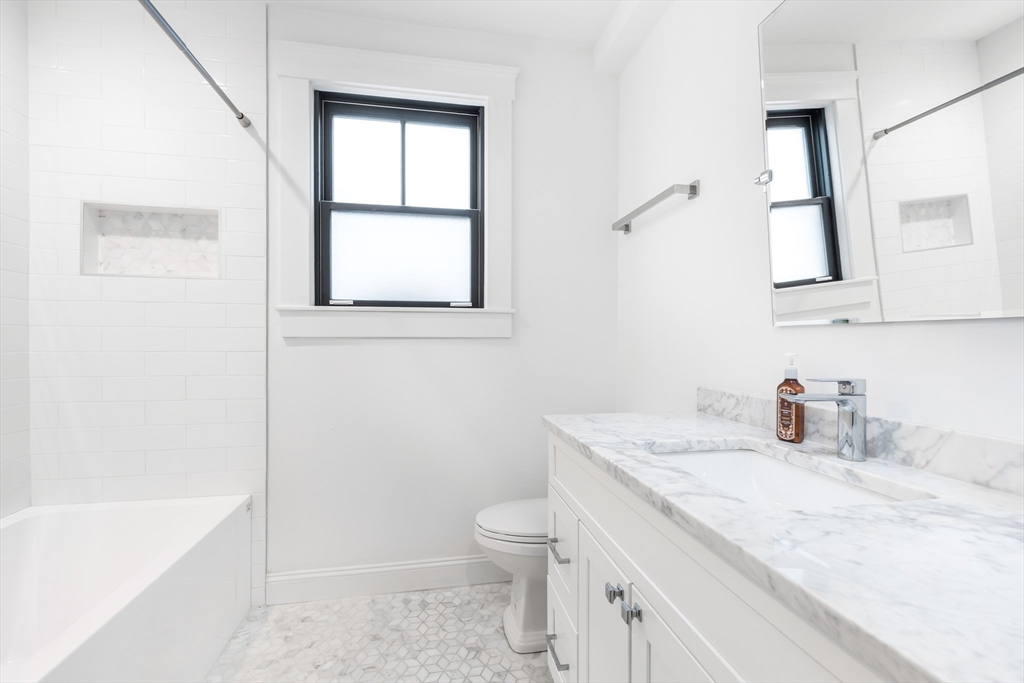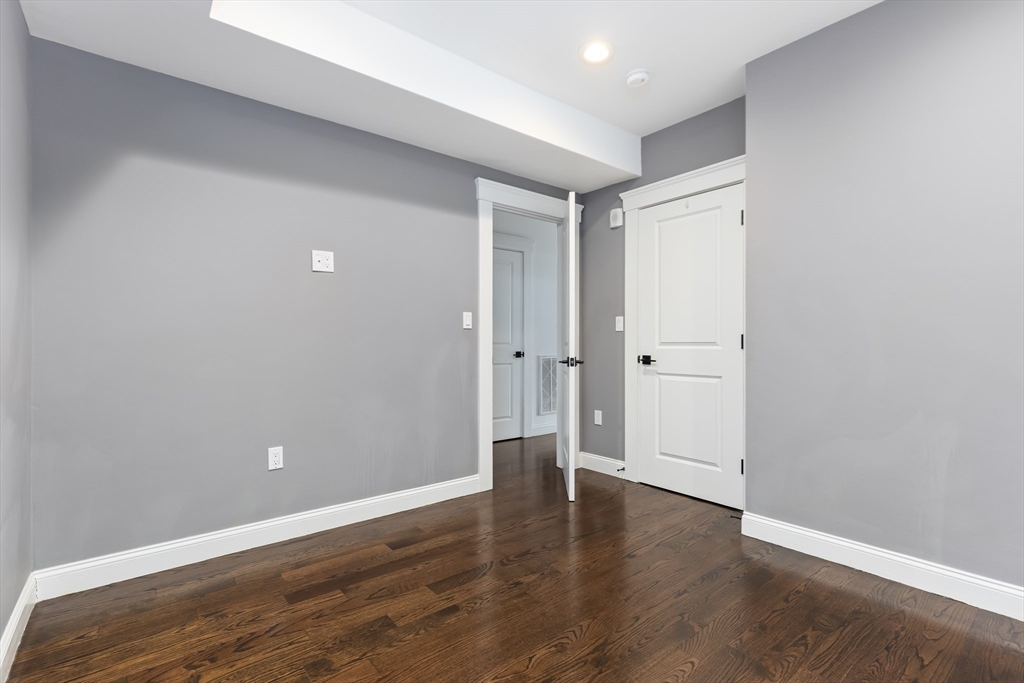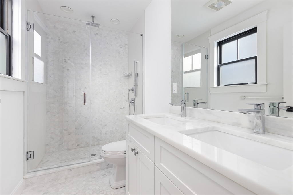 Nestled in East Boston’s vibrant Eagle Hill, this meticulously designed 2-bed, 2-bath unit plus an office, with private outdoor space blends contemporary style with comfortability. The open-concept kitchen/living area, perfect for relaxing or entertaining, features a chef’s kitchen with high-end stainless steel appliances, sleek countertops & ample cabinetry. The spacious primary suite, strategically situated at the rear of the unit, boasts an en-suite bath, walk-in closet, and a private deck. The second bedroom accommodates a queen bed and offers a generous closet. Both full bathrooms feature modern vanities, sleek tile work and premium fixtures. Additional highlights include hardwood floors, central A/C, in-unit laundry, abundant built out closets throughout, and a shared enclosed yard. Close proximity to Downtown Boston, Logan Airport, subway and major highways.