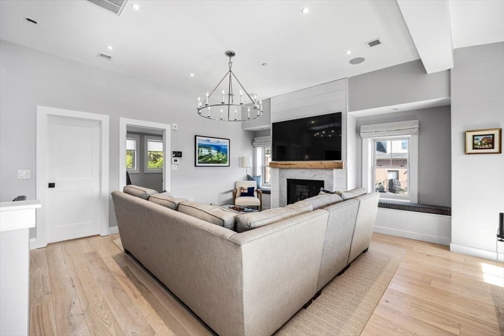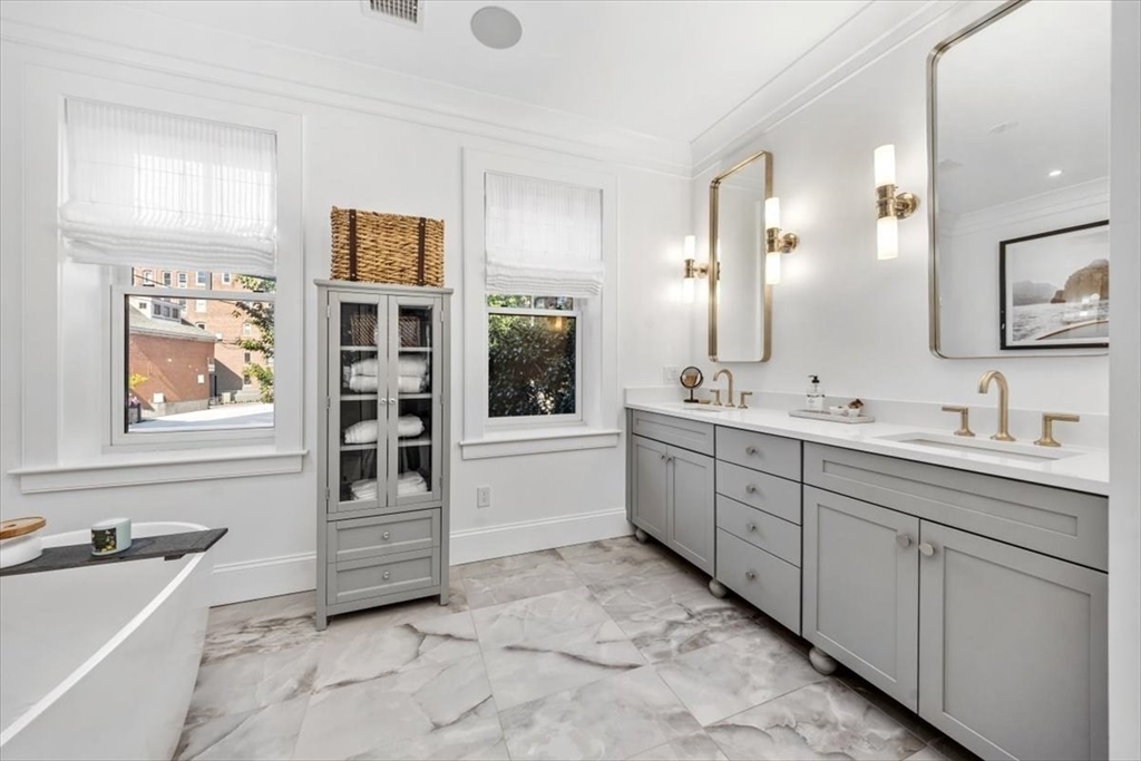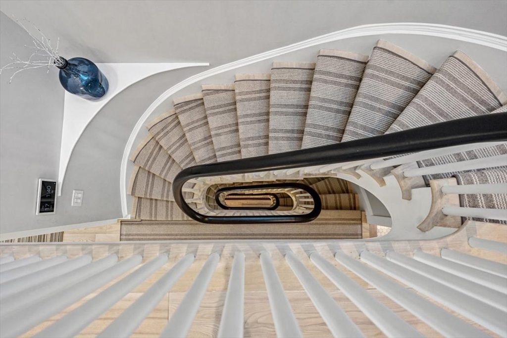 Welcome home to timeless elegance and modern comfort in this exquisite 5-bedroom brick residence on one of Charlestown’s most desirable streets.Renovated and reimagined in 2021,this SMART home perfectly balances contemporary luxury with preserved historic charm—marble gas fireplaces,soaring ceilings,and a sweeping 4 story staircase set the tone.The main floor invites you to gather in a chef’s kitchen featuring a Wolf range,Sub-Zero refrig. and a grand quartz island that opens to a sunny patio with a built-in outdoor TV—ideal for year-round entertaining.The 2nd floor is a serene retreat with a sumptuous primary suite offering a spa-inspired bath, steam shower and radiant heat,fireplace and private office.Upstairs, 3 spacious bedrms.,2 full baths and laundry provide comfort for all.The top floor impresses with a wet bar, gym,full bath,Subzero refrig.,firepl.and breathtaking CITY VIEWS.Finished basement w/ firepl.,Sub Zero wine fridge, bath and SECOND LAUNDRY completes this inviting home.
