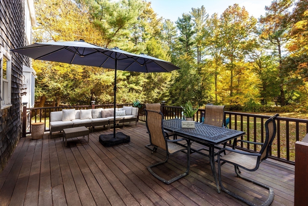 Welcome to this open concept Gambrel Dutch Style Colonial featuring 3 bedrooms, with 2.5 baths set on a picturesque one-acre lot in the heart of Marshfield. Step inside to discover a bright open floor plan blending style and practicality for modern convenience. Sunlight fills the home highlighting the inviting living spaces and flexible layout, the finished basement offers additional living space, and a bathroom along with ample storage. Enjoy the detached two car garage with workspace and flex space over the garage that offers endless possibilities, The fenced yard with large mahogany deck provides a great area for entertaining with a true sense of privacy. Ideally located close to shopping, dining, entertainment and beautiful beaches. This home is conveniently located minutes from Rte 3 offering an easy commute. A wonderful opportunity to own a timeless home that offers space, privacy, and modern comfort in a sought-after location.